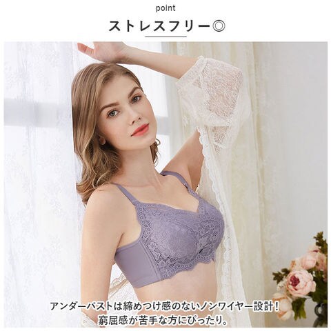 | 商品説明 | バストを心地よくホールド!おしゃれなブラが登場。【ストレスフリー◎】アンダーバストは締めつけ感のないノンワイヤー設計!窮屈感が苦手な方にぴったり。【4段階サイズ調節OK】背面ホックで着脱。自分サイズにフィット!【立体構造のパッド】バストをしっかりキレイ魅せ♪【脇高設計】バストの揺れを抑え、横流れを防止。【エレガントな雰囲気】上品なレースデザイン♪ |