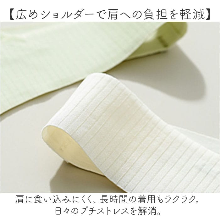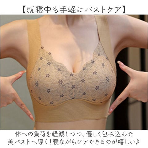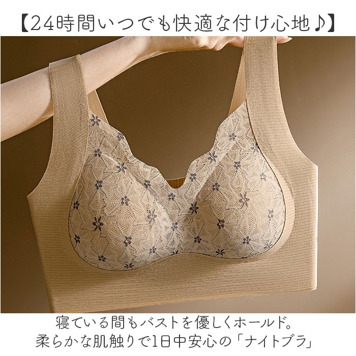 | 商品説明 | 【24時間いつでも快適な付け心地♪】寝ている間もバストを優しくホールド。柔らかな肌触りで1日中安心の「ナイトブラ」。【締め付け感がなくストレスフリー】締めつけ感が苦手な方に嬉しい、ノンワイヤー仕様。伸縮ゴムで、アンダーに心地よくフィット。【就寝中も手軽にバストケア】体への負荷を軽減しつつ、優しく包み込んで美バストへ導く!寝ながらケアできるのが嬉しい♪【バストのカタチをふんわりキープ】バストを支える立体的なソフトパッド。ズレる心配のないブラ一体型。【ホックなどがなく着脱スムーズ】頭からすっぽり被るだけでOK。ホックが肌に当たるなどの不快感もゼロ◎【日中も大活躍間違いなし!】継ぎ目が少なく、アウターに響きにくい&動きも妨げない!スポーツシーンにもおすすめ。【広めショルダーで肩への負担を軽減】肩に食い込みにくく、長時間の着用もラクラク。日々のプチストレスを解消。【背中まですっきりキレイに演出】バストの揺れを抑えて横流れを防止する脇高設計。U字のバックラインで後ろ姿も美しく♪【さりげないおしゃれなデザイン】カップ部分のレースや小花柄が上品な印象を演出。色違いで揃えたくなるカラーバリエーション♪ |