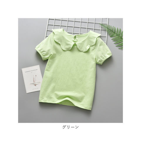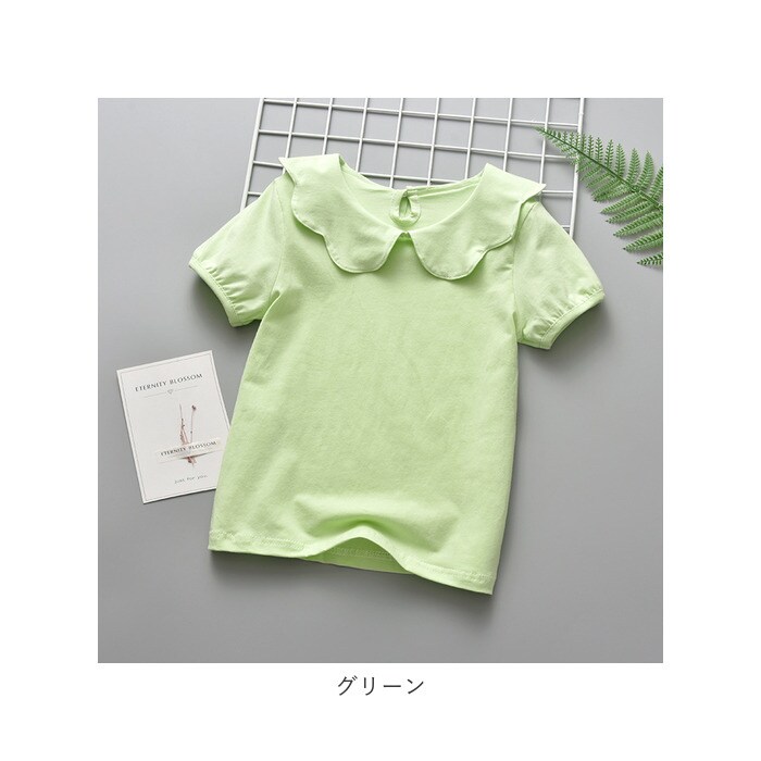 丸襟 カットソー キッズ 半袖 pmybrows008【グリーン】【130cm】