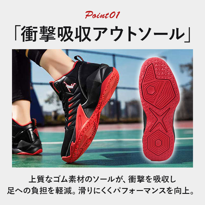 | 商品説明 | がっちりソールで滑らない、パフォーマンスの向上に!バスケットシューズが登場。【衝撃吸収&滑りにくいアウトソール】上質なゴム素材のソールが、衝撃を吸収し足への負担を軽減。滑りにくくパフォーマンスを向上。【様々なスポーツシーンで活躍】バスケ、バドミントン、テニス、卓球、ウォーキングやランニング、ジムでの使用にぴったり!【耐摩耗性に優れた素材で長持ち】激しい動きにも耐える、耐摩耗性に優れた作り。1足で長く使えるのも嬉しいポイント。【足当たりが優しいハイカット】歩行が安定するハイカットタイプ。内側にはもっちりクッションINで、足当たりが優しい。【ムレにくく快適な靴内をキープ】アッパーはメッシュ素材を使用し、ムレにくさを実現。汗をかくスポーツシーンも快適な靴内に。【スタイリッシュデザインが魅力】子供から大人まで履ける、スタイリッシュなデザインが魅力。部活、学校、趣味、幅広くマッチ。 |