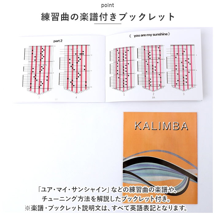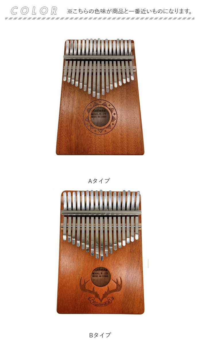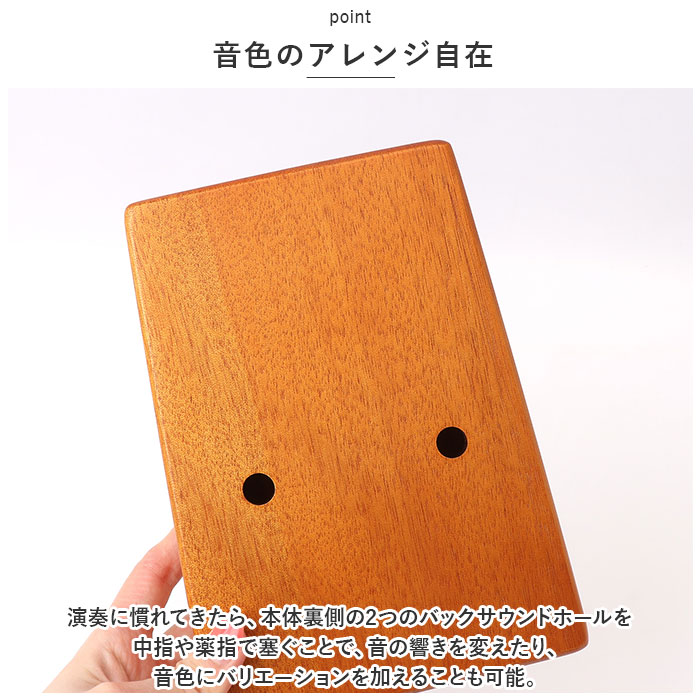 | 商品説明 | オルゴールのような優しい音色に心癒される♪手軽に弾ける17キータイプのカリンバ。【カリンバってなに?】カリンバとは、音を共鳴させるための箱に固定された細い金属の鍵盤(キー)を指で弾いて演奏する、アフリカで生まれた伝統的な民族楽器のこと。【初心者でも気軽に弾ける】木製の本体を両手のひらで支えながら、キーを親指で弾くだけなので、大人から子供まで気軽に演奏できるのがカリンバの魅力。【木目の美しいマホガニー材】カリンバ本体には、手のひらに優しく馴染む桃花心木(マホガニー)を使用。温かみのある音色と、使い込むほどに味わい深く変化する色合いは天然木ならではのもの。【アルファベットの音階付き】鍵盤(キー)には、アルファベットの音階と番号が刻まれているため、視覚的にも演奏がしやすい設計。17キータイプのカリンバでは、約2オクターブの音域を演奏可能。【音色のアレンジ自在】演奏に慣れてきたら、本体裏側の2つのバックサウンドホールを中指や薬指で塞ぐことで、音の響きを変えたり、音色にバリエーションを加えることも可能。【練習曲の楽譜付きブックレット】「ユア・マイ・サンシャイン」などの練習曲の楽譜や、チューニング方法を解説したブックレット付き。(※ブックレット説明文は、すべて英語表記となります。)【メンテナンスツールも充実】演奏時の視認性をアップさせる2色のキーステッカー、指先の痛みを和らげる指サック、キー調律用ハンマー、お手入れ用クロスも付属し、メンテナンス用ツールも充実。【インテリアのワンポイントに】ビンテージ感のあるマホガニー材の表面には、蓮の花や水滴など幾何学模様のモチーフが彫刻され、リビングに飾っておくだけでも素敵なインテリアに。【コンパクトに持ち運び】膝の上でも机でもどこでも気軽に演奏開始!ベロア生地で仕上げた収納袋が付属しているので、お出掛け先にも気軽に連れていける!【ギフトにもオススメ】ギターやピアノは難しいかも・・・と思われていた方でも手軽に始められるカリンバ。おうち時間を豊かに過ごしたい方はもちろん、誕生日や母の日など、大切な方へのギフトにもオススメ。 |
