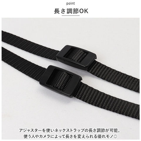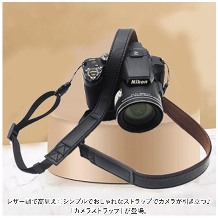 | 商品説明 | レザー調で高見え◎シンプルでおしゃれなストラップでカメラが引き立つ♪「カメラストラップ」が登場。【レザー調】落ち着きのあるレザー調のベルトで高見え感あり◎シンプルでおしゃれなストラップがカメラの存在感を引き立てる、魅力的なアイテム。【丈夫な作り】PUレザーを使用した丈夫な作りで、大切なカメラをしっかりと支える。カメラの落下防止に役立ち、撮影もスムーズに。【柔らか素材】肌に触れるストラップの内側は柔らか素材に。肌触りがなめらかなので、ネック部分にフィット。ストレスフリーな着け心地。【アジャスターセット】付属のアジャスターは7点セット。カメラにストラップ穴があれば装着可能。幅広いカメラに使えるのも嬉しいポイント。【長さ調節OK】アジャスターを使いネックストラップの長さ調節が可能。使う人やカメラによって長さを変えられる優れモノ◎ |