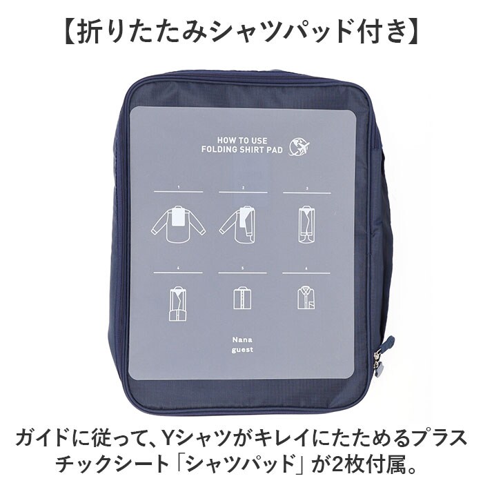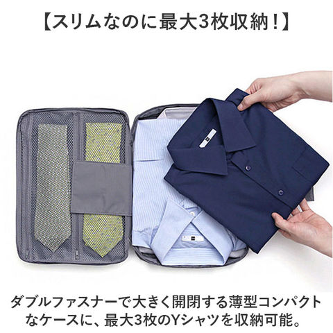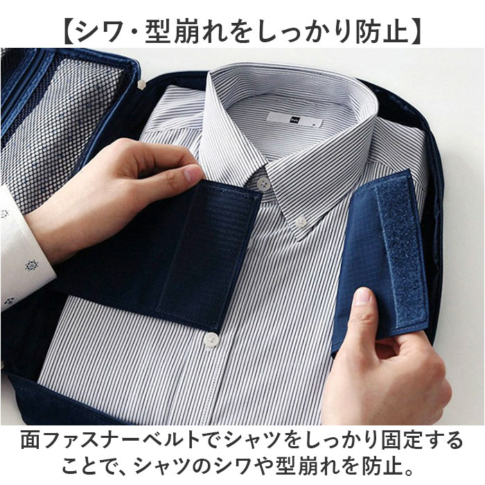 | 商品説明 | ビジネストラベルで大活躍!Yシャツがコンパクトに収納できる「シャツケース×2点セット」【スリムなのに最大3枚収納!】ダブルファスナーで大きく開閉する薄型コンパクトなケースに、最大3枚のYシャツを収納可能。【シワ・型崩れをしっかり防止】面ファスナーベルトでシャツをしっかり固定することで、シャツのシワや型崩れを防止。【バッグの中でもキレイな形】ケースの中でシャツがズレないから、スーツケースの中でもアイロン掛け後のキレイな形をキープ。【ひと目で分かるメッシュポケット】フラップ裏側には、ネクタイやソックス等小物類を見やすくしまえるメッシュポケットを2つ装備。【折りたたみシャツパッド付き】ガイドに従って、Yシャツがキレイにたためるプラスチックシート「シャツパッド」が2枚付属。【バッグ単体でもスタイリッシュ】ケース外側のハンドルでケース単体でも持ち運びスマート。旅行前のパッキング作業もスムーズに。【清潔感あふれるスタイルに】白さの際立つYシャツはビジネスマンの必須アイテム。旅行先でもパリッと清潔感のあるスタイルに。 |