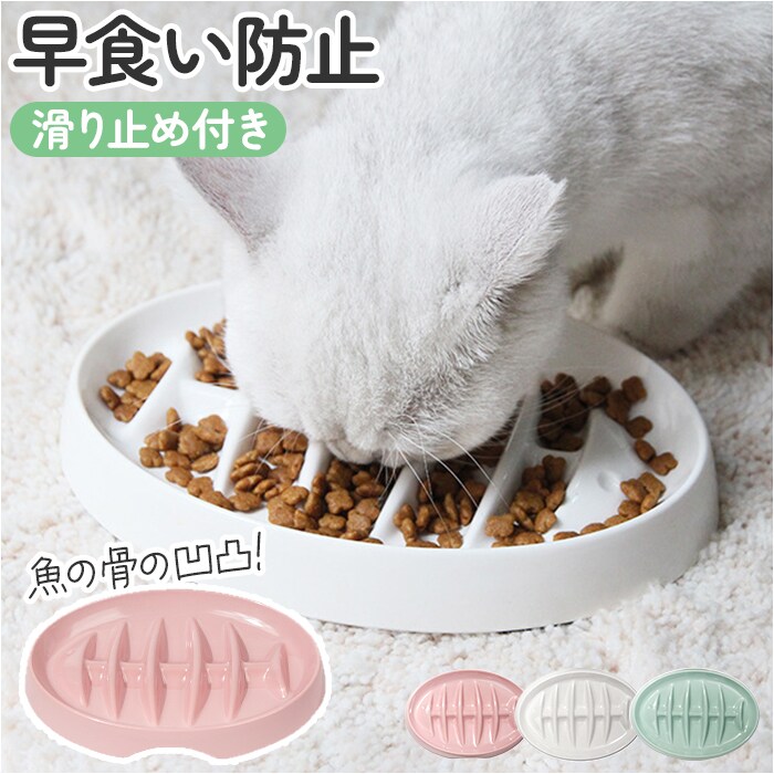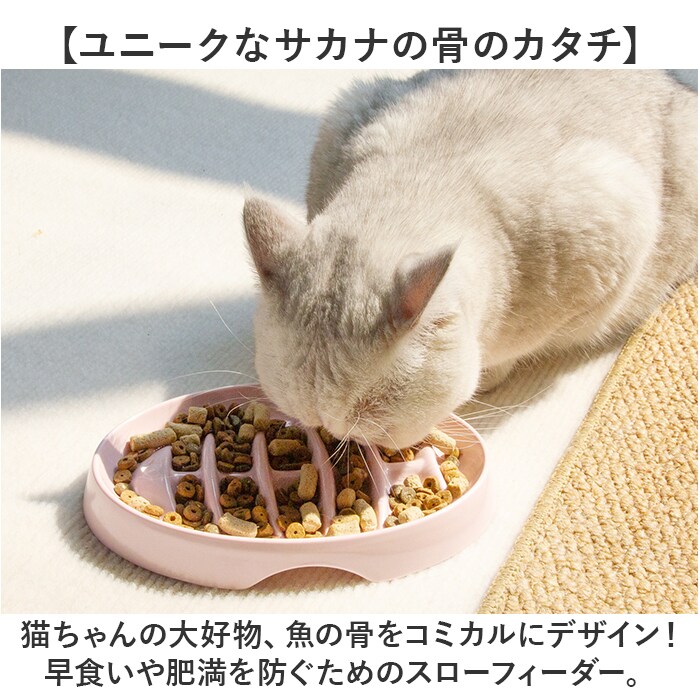 | 商品説明 | 【大切な愛猫の早食い防止に!】大切な猫ちゃんの健康とスローフードのために「キャット用早食い防止 フードボウル」が新登場。【ユニークなサカナの骨のカタチ】猫ちゃんの大好物、魚の骨をコミカルにデザイン!早食いや肥満を防ぐためのスローフィーダー。【ゆったりお食事タイムに導く】魚の骨の凹凸の隙間にフードが入り、敢えて食べにくい形にすることで自然にスローフードを実現。【お食事後のお片付けもグッと楽に】食器の縁は適度な高さに設計。時間をかけてゆっくり食べる習慣が付き食べこぼしも効果的に防ぐ!【ペットを傷つけない安全素材】適度な重みで安定感のあるメラミン樹脂を採用。表面が滑らかなので、猫ちゃん舐めても大丈夫。【底面に滑り止め付き】ボウルの底面4か所には、ネコちゃんがボウルを鼻先で押してもズレにくい滑り止めゴム付き。【サッと洗って、お手入れ楽ちん】食器用洗剤を含ませたスポンジでサッと洗えてお手入れも簡単。いつでも清潔さをキープ。【インテリアに馴染むカラーリング】清潔感のあるくすみカラーがお部屋にマッチ。ペットとの暮らしを優しく彩るシンプルデザイン。 |