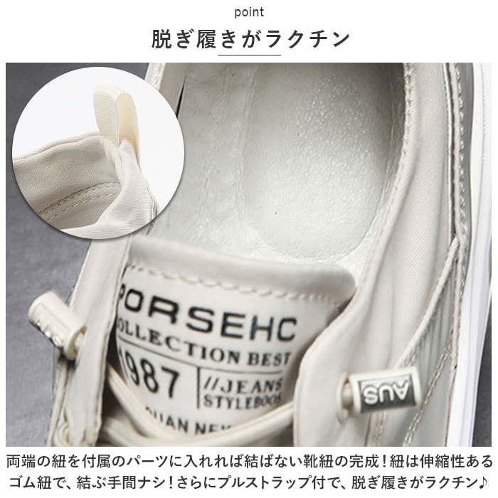 | 商品説明 | こなれたカジュアルコーデにピッタリなメンズ シューズの登場。【カジュアルコーデに馴染む】落ち着いたカラーと、くたっと感ある生地がカジュアルコーデにしっくり馴染む。【脱ぎ履きがラクチン】両端の紐を付属のパーツに入れれば結ばない靴紐の完成!紐は伸縮性あるゴム紐で、結ぶ手間ナシ!さらにプルストラップ付で、脱ぎ履きがラクチン♪【幅広WIDE設計】甲幅が広めの方でもゆったり履ける!つま先部分に締め付け感のない「幅広ワイド設計」。【疲れにくい、ふかふかインソール】クッション性のインソールが、足裏にかかる衝撃を優しく吸収。屈曲性にも優れているから、長時間履いても疲れにくいのが嬉しい!【滑りにくい】アウトソールには滑り止加工されているので、雨に濡れた地面やツルツルとした床でも滑りにくい安心仕様。【外せるインソール】インソールは取り外して洗えるので、気になる靴内をいつでも清潔に保つことができる◎【シンプルデザイン】洋服に合わせやすいシンプルデザイン&カラー!お出かけ、レジャー、スポーツ、アウトドア、もちろんタウンユースにも★ |