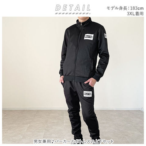 | 商品説明 | 普段使いはもちろん、部屋着やスポーツ時に!パーカーとボトムスの上下セット。パーカーの襟元は首を覆う立ち襟タイプ。ファスナーを開けて襟を折り返して着用する事も可能。フロントの両サイドに、なにかと便利なポケット付き。ボトムスはウエストゴム仕様に加え、紐でさらにサイズ調節可能。両サイドに、スマホがすっぽり入るポケット付き。左の胸元、両腕、左の太もも部分のロゴプリントがワンポイントに!上下ともに、肌触りの優しいあったか素材が裏地にあしらわれたつくり。シンプルなデザインだから、男女兼用で着用できるのが嬉しい♪ |