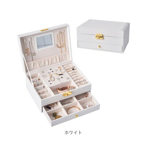 ジュエリーボックス 大容量 鏡付き 鍵付き pmydamai001【ホワイト】