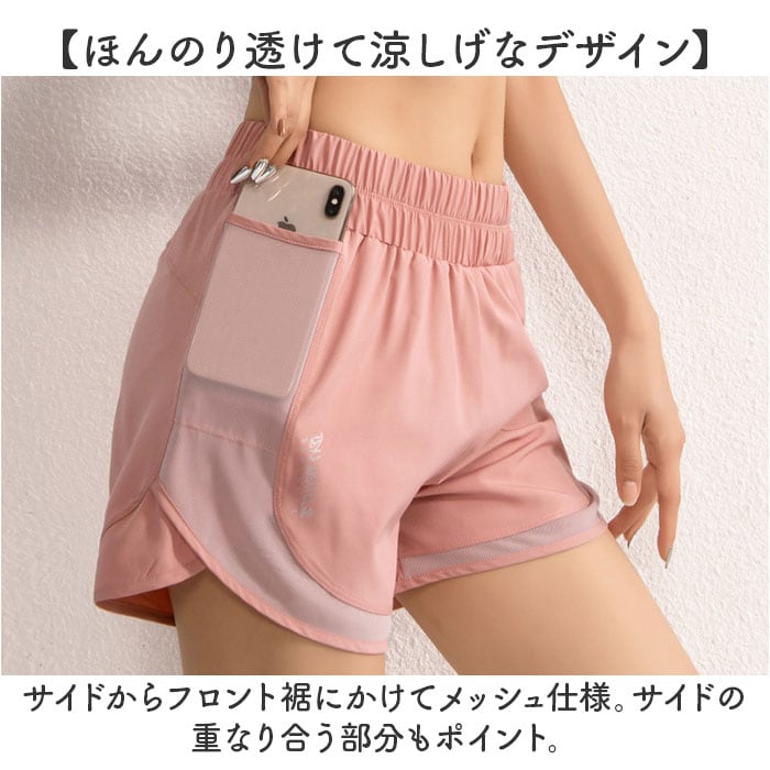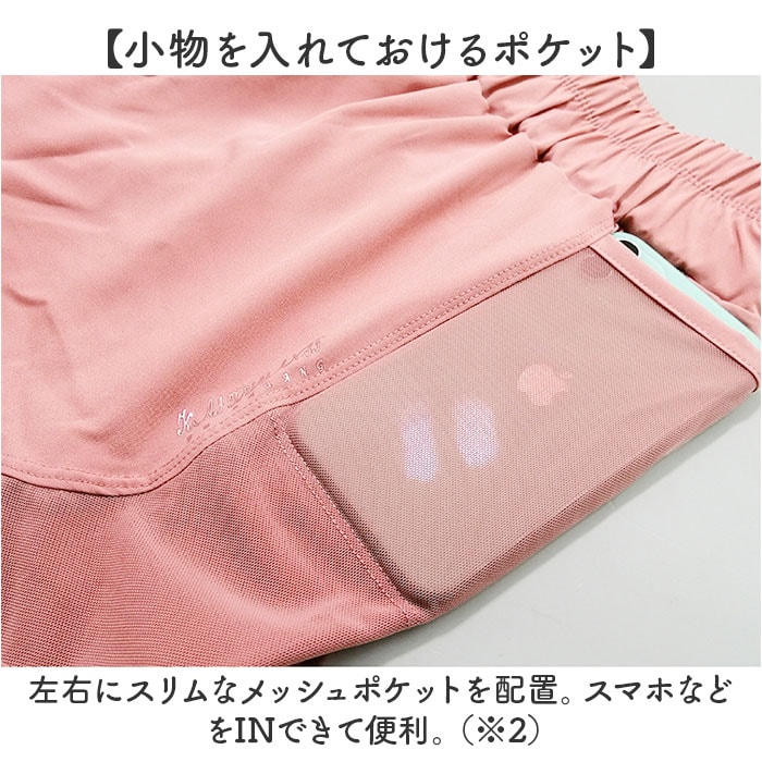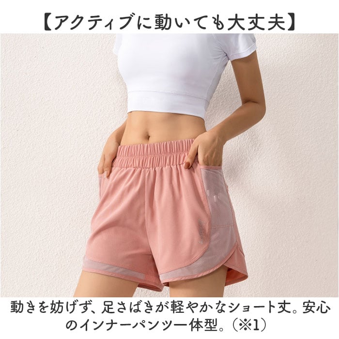 | 商品説明 | 【エクササイズのお供にぴったり】サッと着用できて、快適に体を動かせる☆ショート丈の「ヨガパンツ」が新登場。【アクティブに動いても大丈夫】動きを妨げず、足さばきが軽やかなショート丈。安心のインナーパンツ一体型。(※1)インナーパンツはストレッチ性のある生地感です。【締め付け感がなくストレスフリー】自分サイズにフィットする、ウエストゴム仕様。着脱もスムーズ。【お腹まわりを優しくサポート】幅広ウエストゴムが包み込む♪お腹をすっきり見せて、クロップド丈のトップスとも相性抜群。【小物を入れておけるポケット】左右にスリムなメッシュポケットを配置。スマホなどをINできて便利。(※2)スマホ端末のサイズにより、収納できない場合があります。【ほんのり透けて涼しげなデザイン】サイドからフロント裾にかけてメッシュ仕様。サイドの重なり合う部分もポイント。【乾きが速く洗い替えの心配不要】洗濯後も乾きが速いのがポイント。洗濯機洗いできてお手入れも簡単。【色んなシーンでヘビロテ間違いなし】ヨガはもちろん!ランニングやウォーキング用、ルームウェア代わりとしても活躍。 |