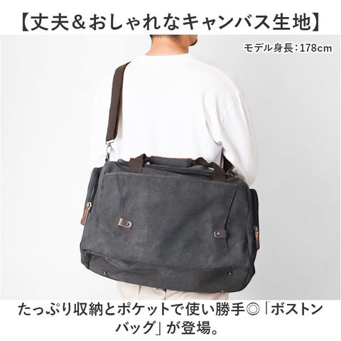 | 商品説明 | 【丈夫&おしゃれなキャンバス生地】たっぷり収納とポケットで使い勝手◎「ボストンバッグ」が登場。【ナチュラル素材で旅をおしゃれに】キャンバス生地を使用したおしゃれなボストンバッグ。カジュアルな印象を抑えた高デザイン♪【ザクザク入る収納力が自慢】旅行や出張、イベントなどで大活躍する!必要な荷物をガシガシ入れられるタフな使い心地。【ショルダー仕様でハンズフリーにも】取り外し可能なストラップ付き。ハンズフリーにもできる◎肩パットつきで持ちやすい!【荷物を整理できるポケット】メインルーム以外にもポケットをたくさん配置。小物の迷子を防いで整理整頓。【コの字ファスナーがポイント】メインには、ダブルのコの字ファスナーを採用。大きく開くから荷物を取り出しやすい。【男性も女性も使えるベーシックさ】誰が持っても大丈夫なベーシックデザイン!家族で共有も可能。どんなシーンでも浮かない◎【ポケット仕様】メイン収納:ファスナーポケット×1フロント:ファスナーポケット×1背面:ファスナーポケット×1サイド:ファスナーポケット×2 |