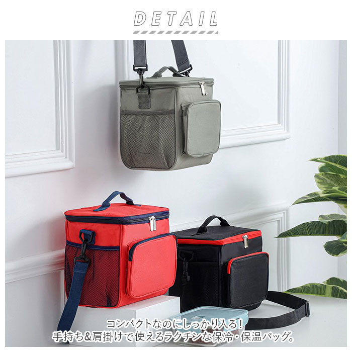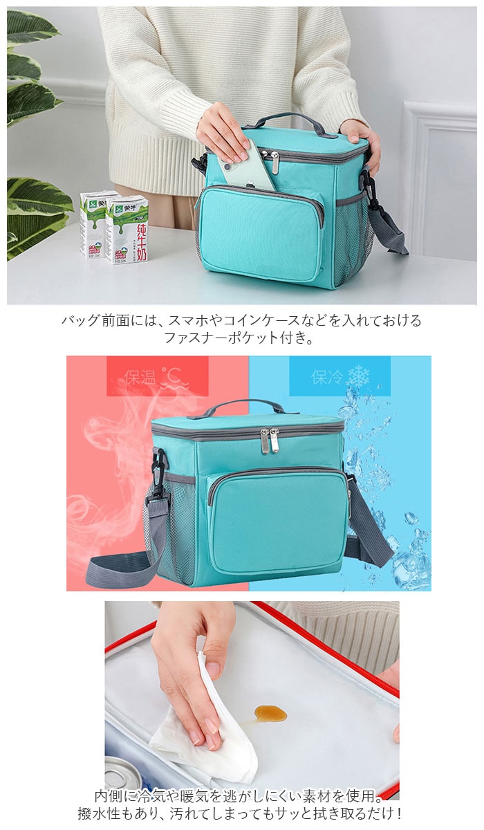 | 商品説明 | コンパクトなのにしっかり入る!手持ち&肩掛けで使えるラクチンな保冷・保温バッグ。運動会やピクニックなどのアウトドアレジャーにぴったり♪開口部はダブルファスナーで大きく開いて、出し入れスムーズ◎内側に冷気や暖気を逃がしにくい素材を使用。撥水性もあり、汚れてしまってもサッと拭き取るだけ!・500mlペットボトルが横向きにすっぽり収まる!350ml缶パックはそのまま入れられるサイズ感。マチがしっかりあるので、大きなタッパーやランチボックスを安定した状態で持ち運び可能。バッグ前面には、スマホやコインケースなどを入れておけるファスナーポケット付き。両サイドにはペットボトルなどが入るメッシュポケットを配置。手持ちではもちろん、長さ調節可能なショルダーベルトを取り付けて、肩掛けもOK!持ち運びがラクラク。使わない時は折りたたんで、コンパクトに収納できるのもポイント。 |