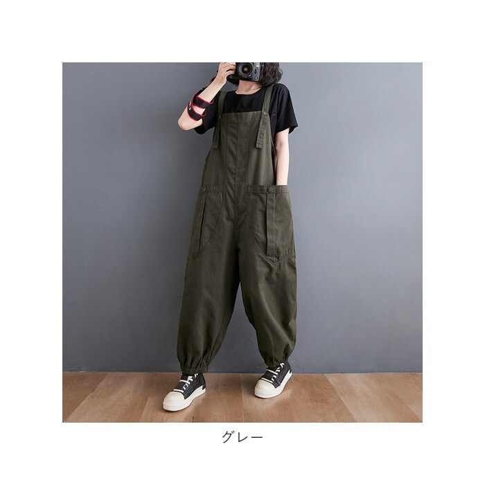 | 商品説明 | 大人の抜け感を演出するルーズなフォルムが可愛らしいサロペットが発売!身体のラインを拾わないゆったりしたシルエットで、リラックスした着用感を実現。肩紐は4段階にボタンで長さ調節可能。両サイドに大きめのポケット付き。バックスタイルにもスマホやパスケース等がすっぽり入る便利なポケット付き。裾口はゆったりしたシルエットにメリハリを付けるゴム入り。軽量でオールシーズン着用可能な綿100%素材を採用。合わせるトップスでお出掛け着としても作業着としても着用できる◎ |