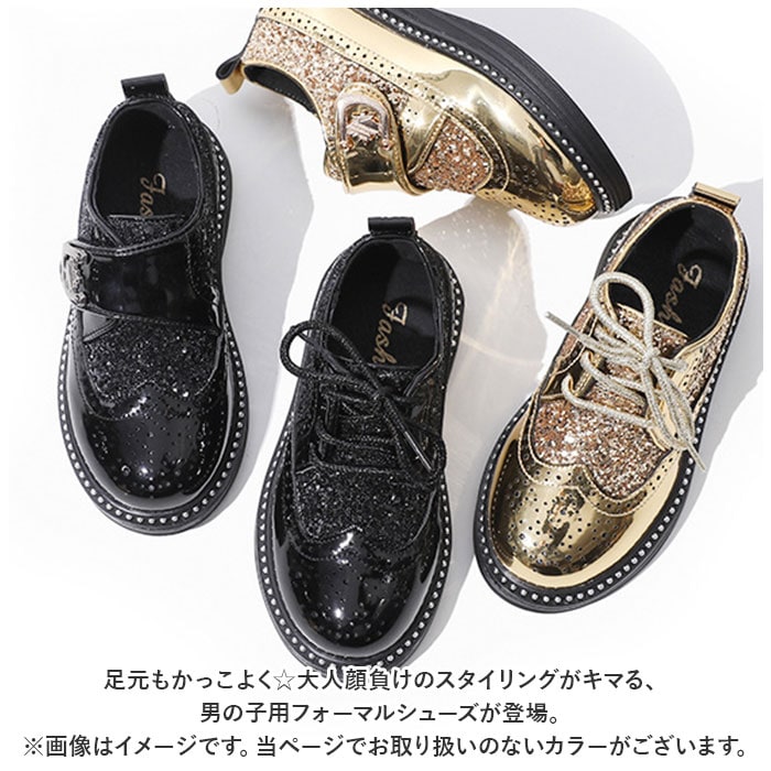 | 商品説明 | 足元もかっこよく☆大人顔負けのスタイリングがキマる、男の子用フォーマルシューズが登場。【存在感のある1足】滑らかでツヤ感のある素材に、キラッと光るグリッターや靴紐、シルバーストーンなどをプラス。フォーマルスタイルをより華やかに演出するアイテム。【フィット感を高めるシューレースタイプ】紐の結び具合で、多少のサイズ調節が可能。シューズと足が一体化するような、心地良い着用感。かかとには足入れをサポートするプルタブ付き。【クッション性のあるインソール】ソフトなインソールを装備しており、長時間履いていても疲れにくい!取り外してお手入れできるから衛生的。【歩きやすさが向上】程よい屈曲性があり、つま先にかけてやや上を向いた形状。つまづきにくく、蹴り上げやすい!【安定感のあるソール】前後の差を抑えつつ、かかと部分は地面からの衝撃を吸収する幅広仕様。底面の一部に滑りにくいゴム素材を使用。【選べるカラー&サイズ】フォーマルコーデにマッチする3カラー。成長に合わせて選べる10サイズ展開で、兄弟お揃いもおすすめ☆ |