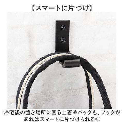 | 商品説明 | 【省スペースOKの壁掛けフック】折りたたみが出来て場所を取らないから、狭い場所でも設置できる!!【嬉しい3個セットでヘビロテ】あると何かと便利な壁掛けフックだから、一つだ足りない!家族とシェアしてもOK!【使わない時は折り畳んで収納】使わない時は90度折り畳んで収納。使う時もサッと出せる手軽さ。【インテリアのアクセントに】無駄な装飾を省いたシンプルデザイン&カラーでインテリアのアクセントに。【スマートに片づけ】帰宅後の置き場所に困る上着やバッグも、フックがあればスマートに片づけられる◎【あったらいいな♪が叶う】玄関以外にも、台所や浴室のタオルやキッチンツールなど、こんな所にあったらいいな♪が叶う。【フックの先端は滑らか】フックの先端は滑らかで、ひっかき傷が出来ない形状なので、急いでいる時も安心。【取付簡単・しっかり固定】2か所の穴に2本のネジ(別売り)を使用して取付。ネジで固定するので丈夫でズレにくい。 |