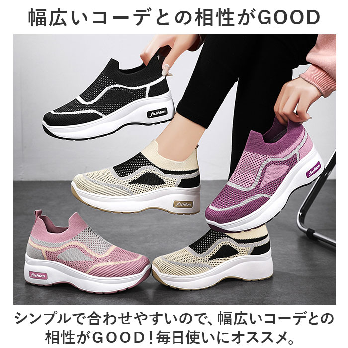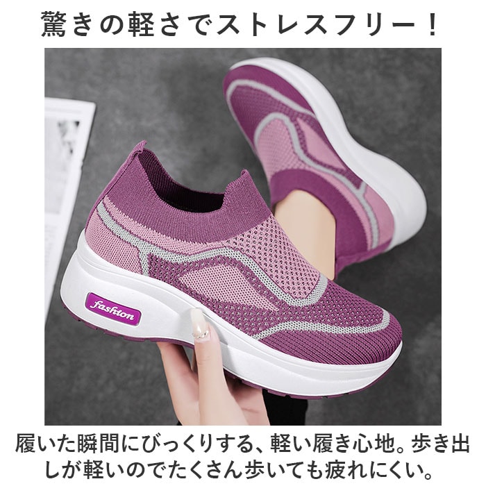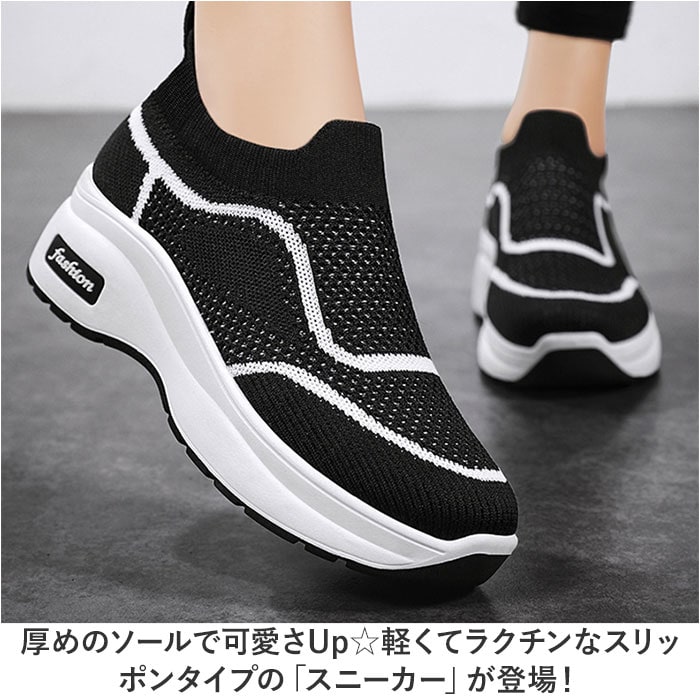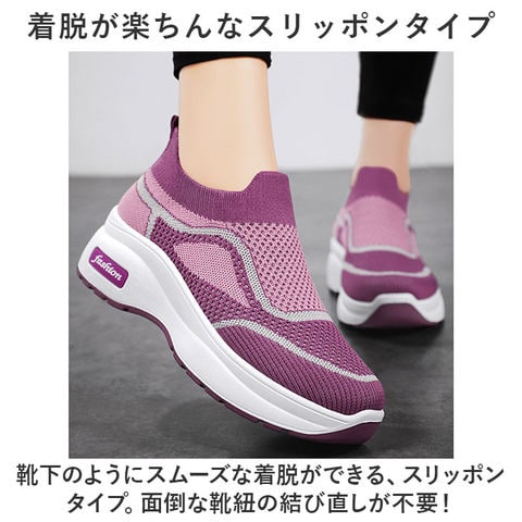 | 商品説明 | 厚めのソールで可愛さUp☆軽くてラクチンなスリッポンタイプの「スニーカー」が登場!【着脱が楽ちんなスリッポンタイプ】靴下のようにスムーズな着脱ができる、スリッポンタイプ。面倒な靴紐の結び直しが不要!【柔らかなアッパーが足にフィット】柔らかさが魅力のニット調のアッパー部分。足を優しく包み込んでフィット!快適な履き心地。【厚めのソールか今っぽくて可愛い】ちょっとだけ厚めのソールでトレンド感をUP。足元を今っぽく仕上げてくれるのもポイント。【驚きの軽さでストレスフリー!】履いた瞬間にびっくりする、軽い履き心地。歩き出しが軽いのでたくさん歩いても疲れにくい。【ムレにくいのも嬉しいポイント】通気性の良いアッパーで、靴内がムレにくい◎汗をかくスポーツシーンにもぴったり!【幅広いコーデとの相性がGOOD】シンプルで合わせやすいので、幅広いコーデとの相性がGOOD!毎日使いにオススメ。【オールシーズン使えるアイテム】季節を問わずに使えるオールシーズンアイテム。ひとつあると長く愛用できるのも魅力。【洗えるインソールで清潔】インソールは取り外しOK。いつでも気軽に洗えるので清潔さをキープできる。 |