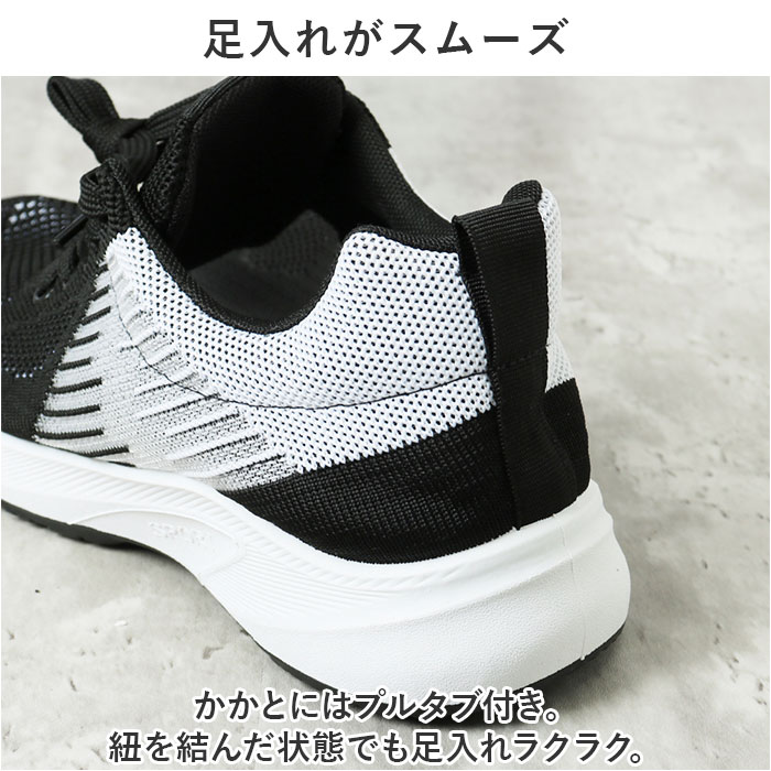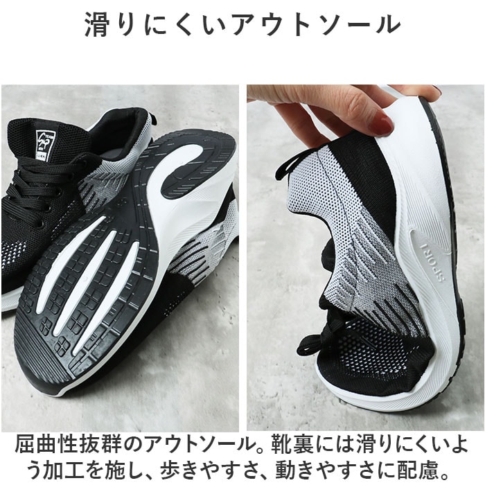 | 商品説明 | アクティブに動けてデイリー使いにぴったりな、スニーカーが新登場。【メッシュ仕様で軽い履き心地】アッパー部分はメッシュ仕様になっており、通気性バツグン!汗をかくスポーツシーンでもムレにくく快適◎【やわらか素材】足にフィットする、柔らかな素材を使用。クッション性のある履き口が優しく足をサポート。靴紐をキュッと締めれば更にフィット感がアップ!【足入れがスムーズ】かかとにはプルタブ付き。紐を結んだ状態でも足入れラクラク。【滑りにくいアウトソール】屈曲性抜群のアウトソール。靴裏には滑りにくいよう加工を施し、歩きやすさ、動きやすさに配慮。【外せるインソール】インソールは取り外しOK。いつでも気軽に洗えるのが嬉しいポイント。【選べるサイズ&カラー】幅広いサイズをご用意。カラーも選べるので、ジム用、ウォーキング用など色違いで揃えても◎【使用シーンいろいろ】シンプルでスタイリッシュなデザイン。普段使いはもちろん、スポーツ、アウトドア、レジャー、旅行など。幅広く使える! |