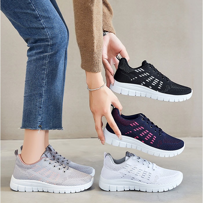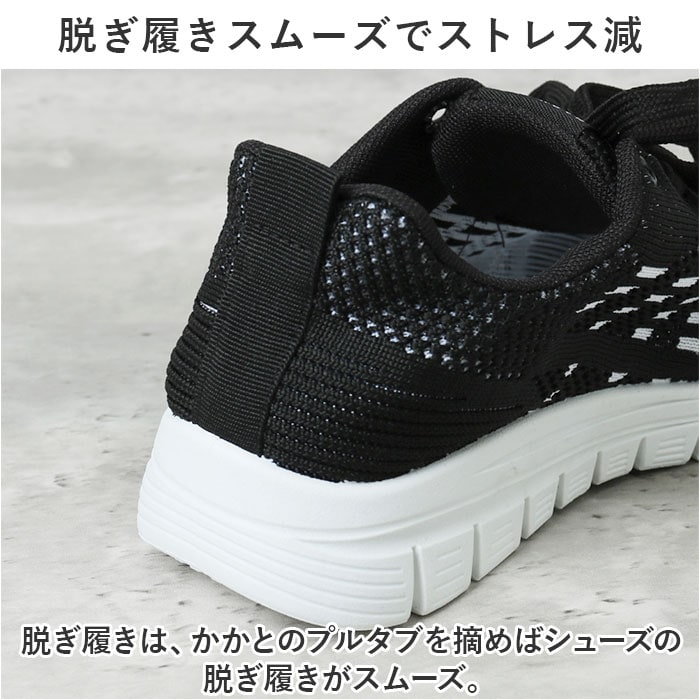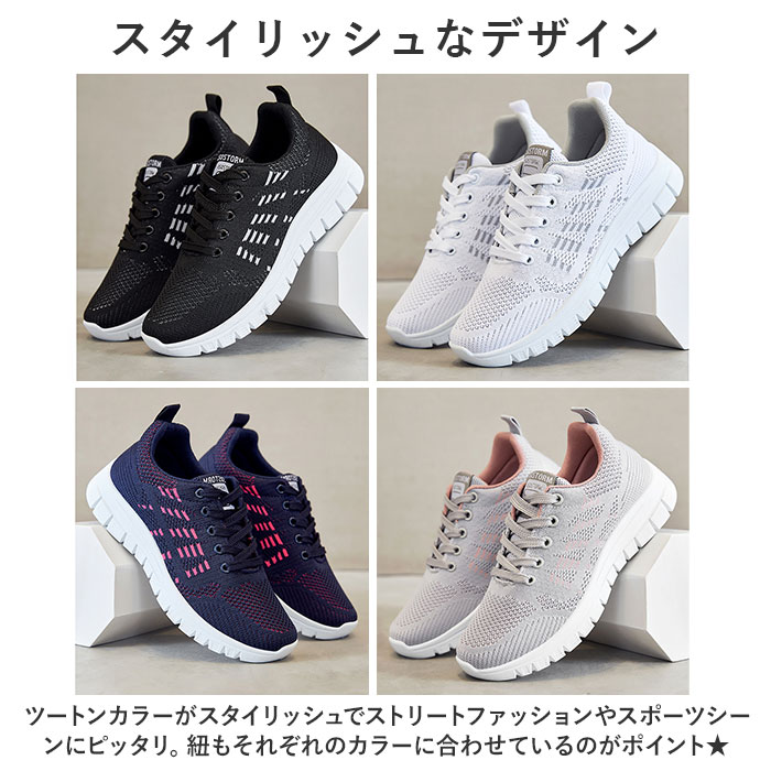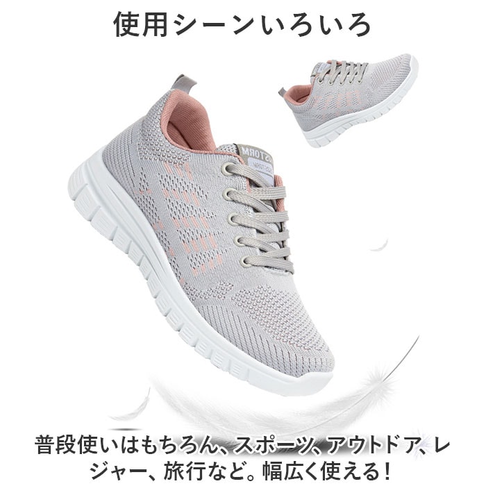 | 商品説明 | うれしい軽量設計!アクティブに動けてデイリー使いにぴったりな、レディーススニーカーが新登場。【ストレスフリーな履き心地】足に負担がかかりにくい、軽量なつくり。長時間歩いたり移動の多い日も疲れを軽減◎【通気性ばっちり】アッパー部分は通気性に優れたメッシュ仕様。涼しげなデザインで、汗をかいてもムレにくいのがポイント。【足入れがスムーズ】柔らかな素材&かかとにはプルタブ付き。紐を結んだ状態でも足入れラクラク。【歩きやすさが向上するソール】足の動きに合わせて柔軟に曲がる、しなやかな屈曲性がポイント。つま先が上を向いたトゥスプリング設計でつまづきにくく、蹴り上げやすい!足元軽やか◎【取り外し可能なインソール】インソールは取り外し可能で、汚れた時に簡単に洗えて衛生的。お気に入りのインソールとの交換も可能!【衝撃を抑えて滑りにくい!】凹凸のあるアウトソールで、滑りやすい路面でも安心。程よい厚みがあり、足にかかる衝撃を吸収。【色々なシーンで活躍】お出かけや通勤・通学、ウォーキングやちょっとした運動にも最適。気軽に履きやすいデザインと機能性が魅力。 |