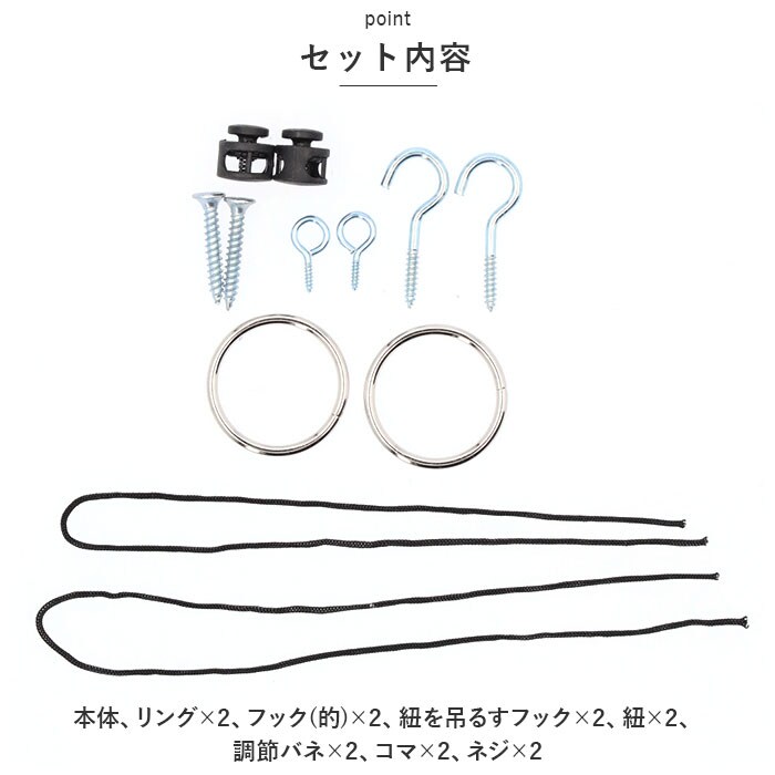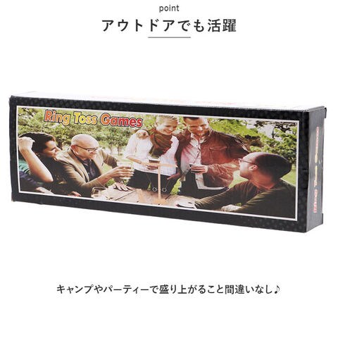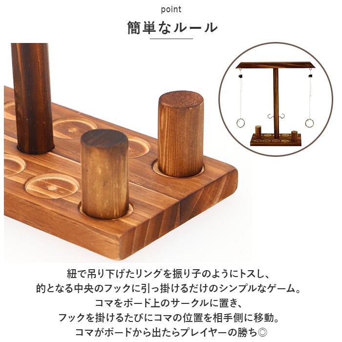 | 商品説明 | 子供も大人も楽しめる!アメリカ生まれの「リングトスゲーム」が登場。【アップグレード版】狭い場所でも遊べるように、本体のボード上にコマを置く仕様にアップグレード!【簡単なルール】紐で吊り下げたリングを振り子のようにトスし、的となる中央のフックに引っ掛けるだけのシンプルなゲーム。コマをボード上のサークルに置き、フックを掛けるたびにコマの位置を相手側に移動。コマがボードから出たらプレイヤーの勝ち◎【持ち運びラクチン】パーツは分解できるので、使わない時はコンパクトに。【アウトドアでも活躍】キャンプやパーティーで盛り上がること間違いなし♪【セット内容】本体、リング×2、フック(的)×2、紐を吊るすフック×2、紐×2、調節バネ×2、コマ×2、ネジ×2 |