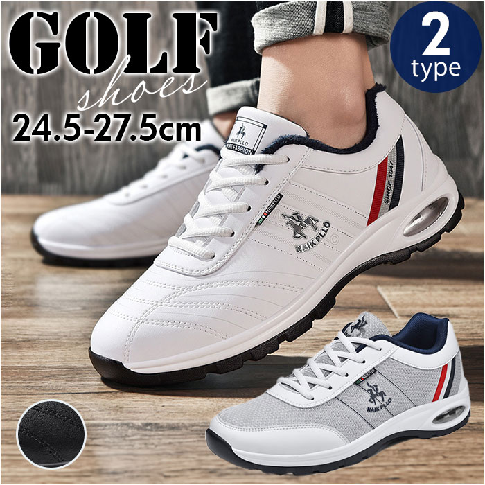 | 商品説明 | ゴルフシーンに映える上品でスタイリッシュなデザインのゴルフシューズが発売。【大人カジュアル】サイドのロゴとタグがアクセント。上品でスタイリッシュなデザインで、ゴルフシーンだけでなく大人カジュアルに履きこなせる一足。【スパイクレス仕様】スパイクがついていないので、スニーカー感覚で自然に歩行可能。【2タイプ展開】Aタイプは、表面が合成皮革素材で水滴や汚れをサッと拭き取りやすい。Bタイプは通気性を重視した、メッシュ素材を採用。【軽量素材】足元が軽いことで疲れにくく、一日中快適に過ごすことが可能。【心地よい履き心地】履き口部分にはクッション性を確保。長時間の使用でも足への負担を減らし、心地よい履き心地を実現。【エアクッション搭載】エアクッションの搭載により、衝撃を吸収して体に負担をかけずに、ゴルフに集中できる一足。さらにヒールもUPしてスタイルアップ効果も♪【快適な靴内】靴内は通気性のあるメッシュ生地を使用し、蒸れにくい構造。1日中履いても快適な靴内をキープ!インソールは取り外して洗えるのでいつも清潔。【シンプルデザイン】洋服に合わせやすいシンプルデザイン&カラー!お出かけ、レジャー、スポーツ、アウトドア、もちろんタウンユースにも★ |
