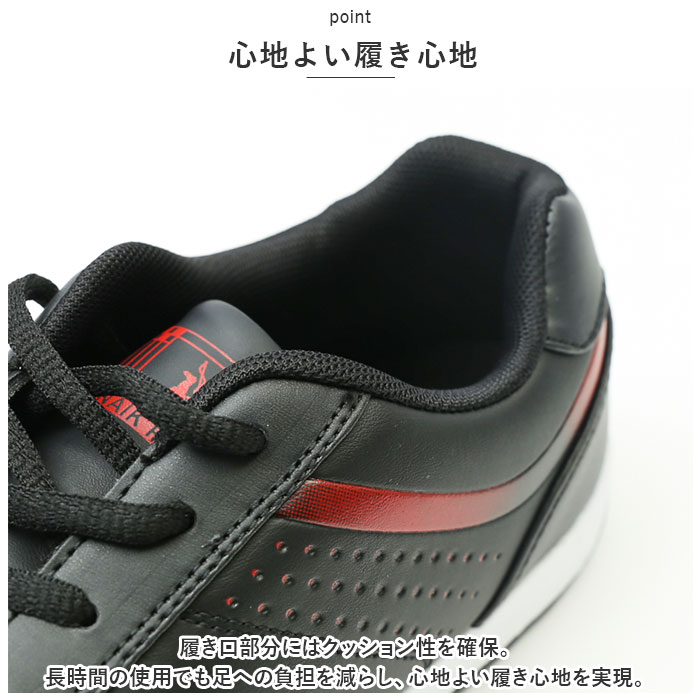 | 商品説明 | ゴルフシーンに映える上品でスタイリッシュなデザインのゴルフシューズが発売。【大人カジュアル】サイドのロゴと赤のラインがアクセント。上品でスタイリッシュなデザインで、ゴルフシーンだけでなく大人カジュアルに履きこなせる一足。【スパイクレス仕様】スパイクがついていないので、スニーカー感覚で自然に歩行可能。【汚れに強い】表面が合成皮革素材で水滴や汚れをサッと拭き取りやすい。【軽量素材】足元が軽いことで疲れにくく、一日中快適に過ごすことが可能。【心地よい履き心地】履き口部分にはクッション性を確保。長時間の使用でも足への負担を減らし、心地よい履き心地を実現。【快適な靴内】靴内は通気性のあるメッシュ生地を使用し、蒸れにくい構造。1日中履いても快適な靴内をキープ!インソールは取り外して洗えるのでいつも清潔。【シンプルデザイン】洋服に合わせやすいシンプルデザイン&カラー!お出かけ、レジャー、スポーツ、アウトドア、もちろんタウンユースにも★ |