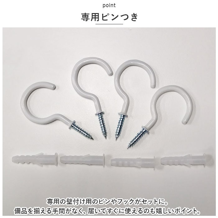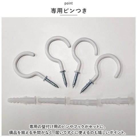 | 注意点 | [付属品]フック x 4個海外輸入品のため、商品によってはパッケージや説明書が、英語や中国語表記となっている場合があります。商品を安価でご提供させていただくため、輸入時のパッケージのままでのお届けとなります。予めご了承くださいませ。商品の写真はできる限り実物のお色に近づけるように加工しておりますが、お使いのモニター設定、お部屋の照明などにより、実際の商品と異なる場合がございます。商品の生産時期などにより、付属品(ボタン、ファスナー、タグ、パッケージなど)のデザインや仕様の一部が変更になる場合がございますが、予めご了承くださいませ。商品や個体差などにより、表記と若干異なる場合がございますが、予めご了承くださいませ。輸入品のため、糸の継ぎ目や縫製等が甘い部分、糊跡等が生じる場合がございますが、予めご了承くださいませ。生地の特性上、やや匂いが強く感じられるものもございます。数日のご使用や陰干しなどで気になる匂いはほとんど感じられなくなります。お手入れなどはタグなどの表記をご確認ください。配送の方法によっては、商品に多少のシワ等ができる場合がございますが、出来る限りお客様にリーズナブルな価格帯でご提供するためです。ご了承くださいませ。採寸方法の違いにより、多少の誤差がある場合がございます。 |