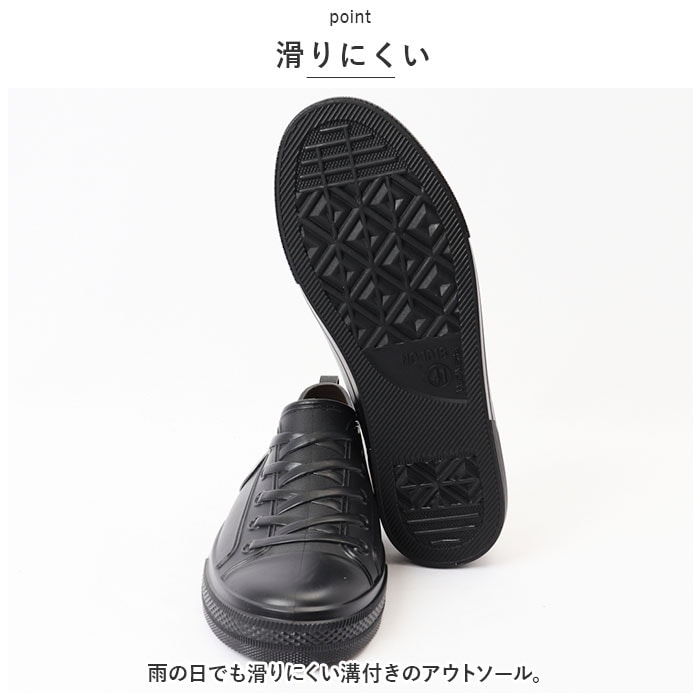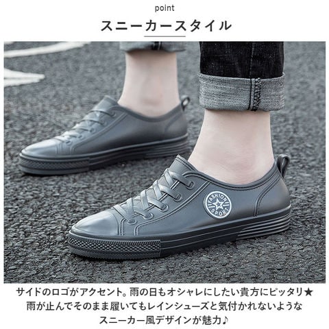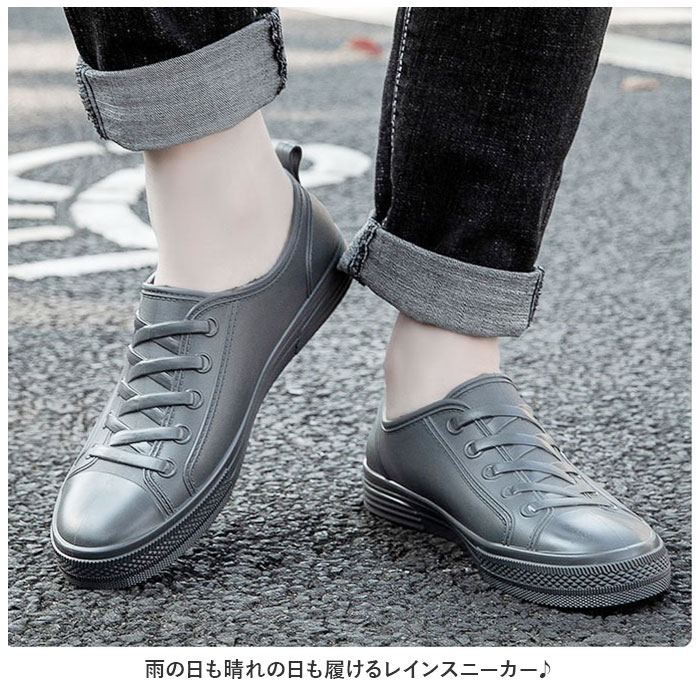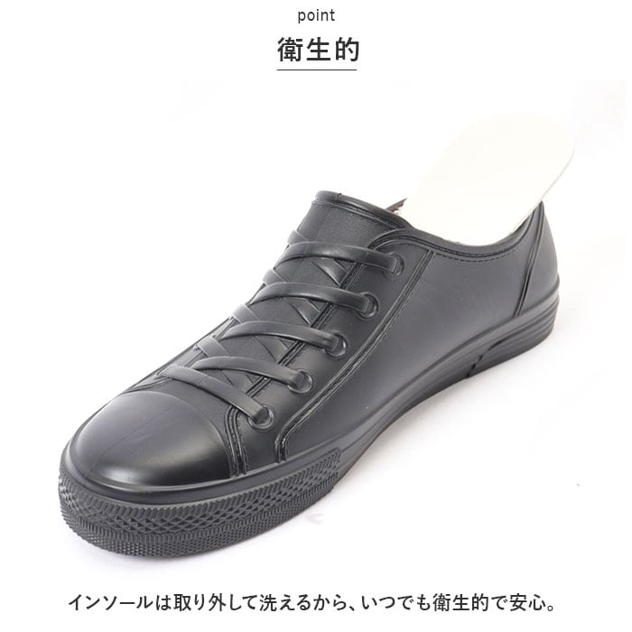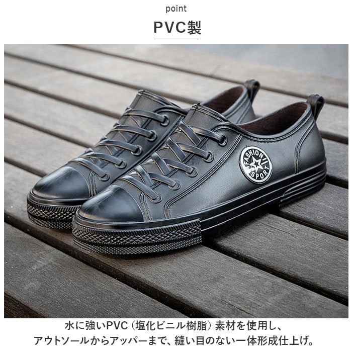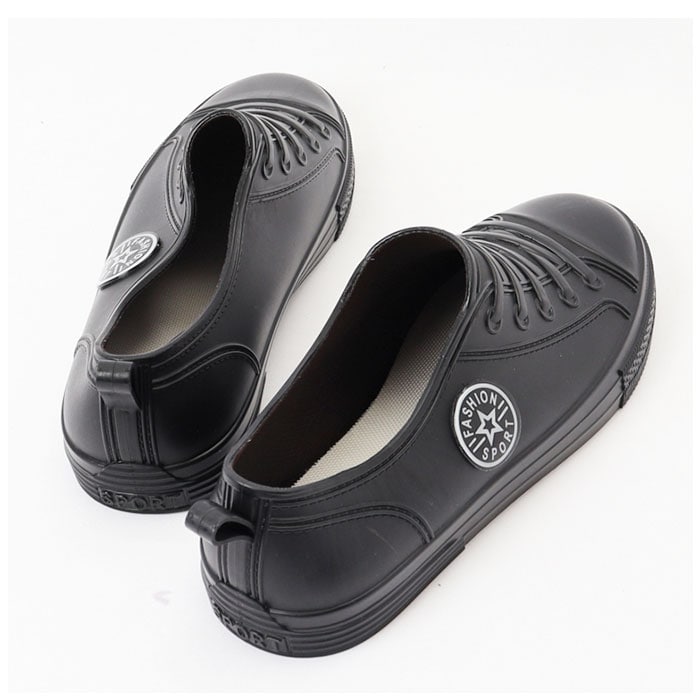 | 商品説明 | 雨の日も晴れの日も履けるレインスニーカー♪【スニーカースタイル】サイドのロゴがアクセント。雨の日もオシャレにしたい貴方にピッタリ★雨が止んでそのまま履いてもレインシューズと気付かれないようなスニーカー風デザインが魅力♪【PVC製】水に強いPVC(塩化ビニル樹脂)素材を使用し、アウトソールからアッパーまで、縫い目のない一体形成仕上げ。【晴雨兼用】撥水性が高いPVC素材なので、普段使いはもちろん雨の日のレインシューズとしても◎シンプルデザインなので、色んなファッションに合わせやすいのも嬉しいポイント。【屈曲性◎】柔らか素材で動きやすくストレスのない履き心地。足への負担が軽減。【衛生的】インソールは取り外して洗えるから、いつでも衛生的で安心。【滑りにくい】雨の日でも滑りにくい溝付きのアウトソール。 |