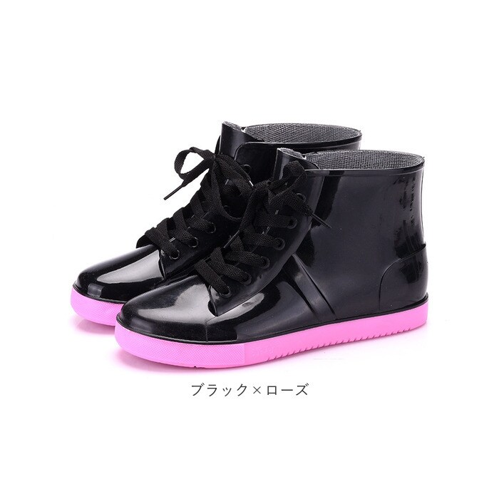 インナーなし レインスニーカー pmygrainboot13【ブラック×ローズ】【39(24.5cm)】