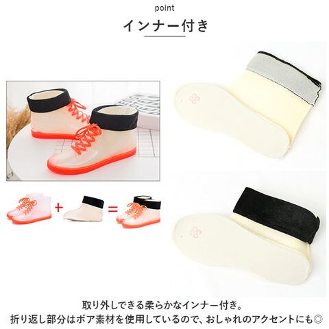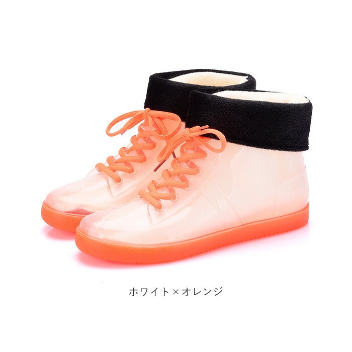 インナー付き レインスニーカー pmygrainboot14【ホワイト×ブラック】【37(22cm)】