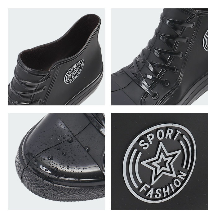 | 商品説明 | 雨の日も晴れの日も履けるレインスニーカー♪【お洒落は足元から】サイドのロゴがアクセント。雨の日もオシャレにしたい貴方にピッタリ★パッと見はどこから見てもレースアップ風ショートブーツ♪雨が止んでそのまま履いてもレインシューズと気付かれない見た目が嬉しい◎【PVC製】水に強いPVC(塩化ビニル樹脂)素材を使用し、アウトソールからアッパーまで、縫い目のない一体形成仕上げ。【晴雨兼用】撥水性が高いPVC素材なので、普段使いはもちろん雨の日のレインシューズとしても◎シンプルデザインなので、色んなファッションに合わせやすいのも嬉しいポイント。【屈曲性◎】柔らか素材で動きやすくストレスのない履き心地。足への負担が軽減。【衛生的】インソールは取り外して洗えるから、いつでも衛生的で安心。【滑りにくい】雨の日でも滑りにくい溝付きのアウトソール。 |