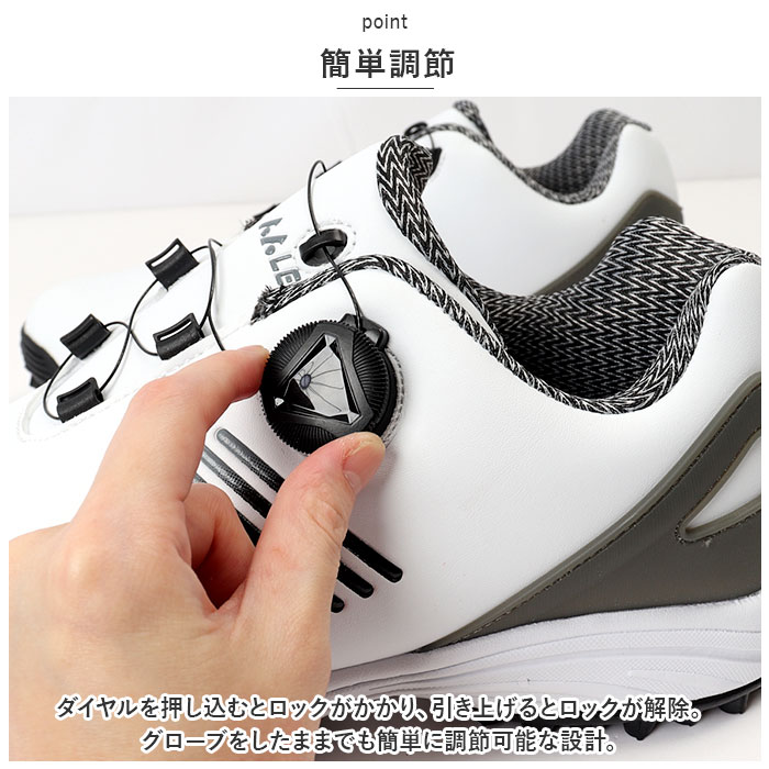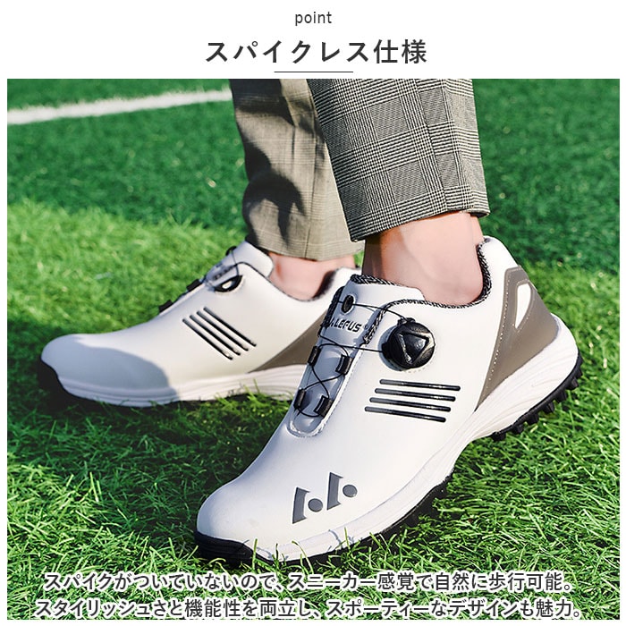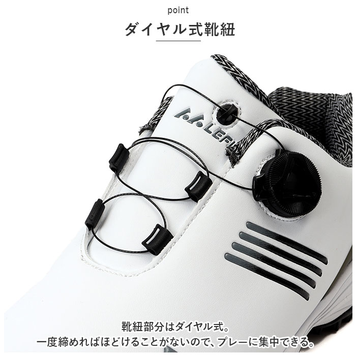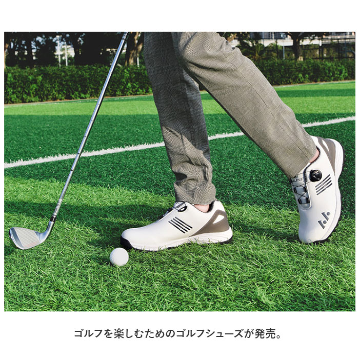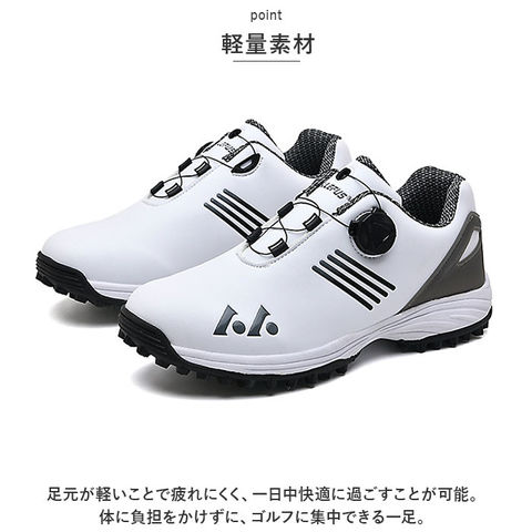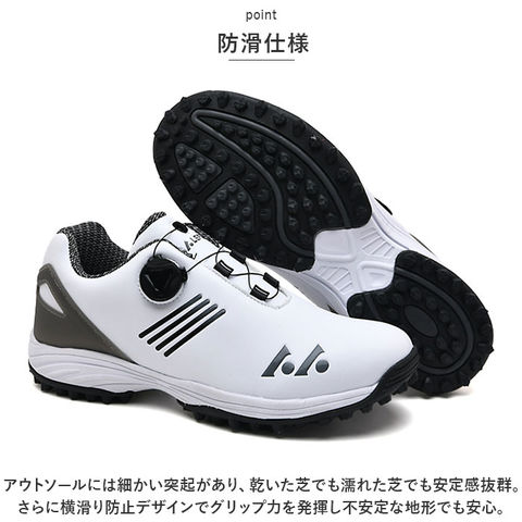 | 商品説明 | ゴルフを楽しむためのゴルフシューズが発売。【スパイクレス仕様】スパイクがついていないので、スニーカー感覚で自然に歩行可能。スタイリッシュさと機能性を両立し、スポーティーなデザインも魅力。【防滑仕様】アウトソールには細かい突起があり、乾いた芝でも濡れた芝でも安定感抜群。さらに横滑り防止デザインでグリップ力を発揮し不安定な地形でも安心。【ダイヤル式靴紐】靴紐部分はダイヤル式。一度締めればほどけることがないので、プレーに集中できる。【簡単調節】ダイヤルを押し込むとロックがかかり、引き上げるとロックが解除。グローブをしたままでも簡単に調節可能な設計。【軽量素材】足元が軽いことで疲れにくく、一日中快適に過ごすことが可能。体に負担をかけずに、ゴルフに集中できる一足。 |
