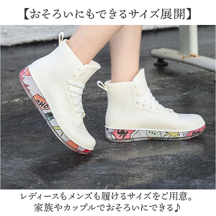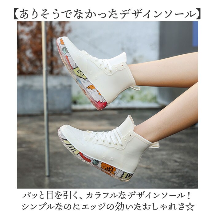 | 商品説明 | 【おしゃれソールで差がつく☆!】雨の日が待ち遠しくなるレイングッズ!「ショートレインブーツ」が登場。【ありそうでなかったデザインソール】パッと目を引く、カラフルなデザインソール!シンプルなのにエッジの効いたおしゃれさ☆【ブーツみたいなレースアップ】まるでショートブーツのようなレースアップがポイント。レイングッズに見えないのがGOOD。【しっかり防水&滑り止めで安心】水濡れに強い、PVC素材を使用。アウトソールは滑り止め加工ONで歩行をサポート。【雨の日だっておしゃれでいたい♪】雨がやんだ後も履けるおしゃれなデザインが嬉しい!ショートブーツみたいでスタイリッシュ☆【おそろいにもできるサイズ展開】レディースもメンズも履けるサイズをご用意。家族やカップルでおそろいにできる♪【いろいろなシーンで使える】雨の日はもちろん、レジャーやアウトドア、フェスなど、おしゃれにキメたい日にもぴったり! |