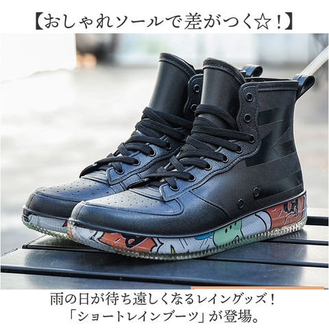 | 商品説明 | 【おしゃれソールで差がつく☆!】雨の日が待ち遠しくなるレイングッズ!「ショートレインブーツ」が登場。【ありそうでなかったデザインソール】パッと目を引く、カラフルなデザインソール!シンプルなのにエッジの効いたおしゃれさ☆【ブーツみたいなレースアップ】まるでショートブーツのようなレースアップがポイント。レイングッズに見えないのがGOOD。【しっかり防水&滑り止めで安心】水濡れに強い、PVC素材を使用。アウトソールは滑り止め加工ONで歩行をサポート。【雨の日だっておしゃれでいたい♪】雨がやんだ後も履けるおしゃれなデザインが嬉しい!ショートブーツみたいでスタイリッシュ☆【おそろいにもできるサイズ展開】レディースもメンズも履けるサイズをご用意。家族やカップルでおそろいにできる♪【いろいろなシーンで使える】雨の日はもちろん、レジャーやアウトドア、フェスなど、おしゃれにキメたい日にもぴったり! |