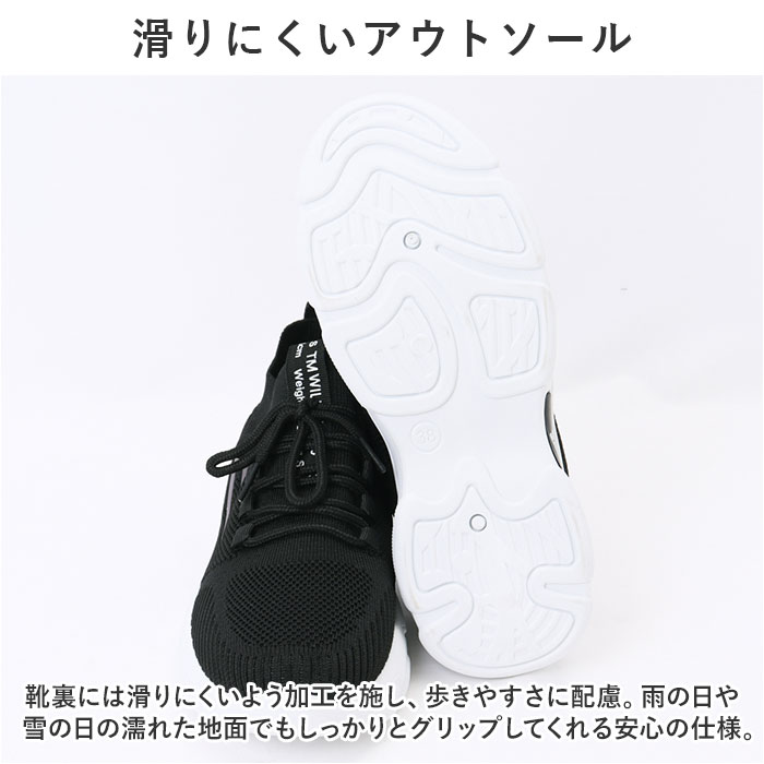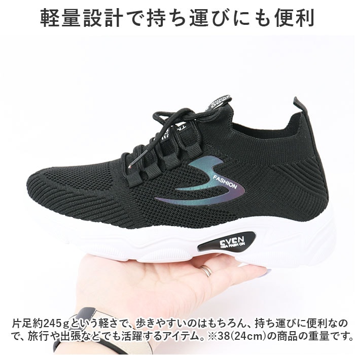 | 商品説明 | 軽量&スタイリッシュなデザインで大人気!旅行時や普段使いまで、幅広く活躍の「スニーカー レディース」が登場。【軽量設計で持ち運びにも便利】片足約245gという軽さで、歩きやすいのはもちろん、持ち運びに便利なので、旅行や出張などでも活躍するアイテム。(※38(24cm)の商品の重量です。)【メッシュ生地で通気性◎】アッパー部分は通気性と伸縮性に優れたメッシュ生地を採用。ムレやすい靴内を快適に保ち、暑い季節でも涼しい履き心地。【アクセントデザインで注目】フロントのロゴと、サイドのデザインがアクセント。ストリートファッションやスポーツシーンで目を引く。【脱ぎ履きスムーズでストレス減】脱ぎ履きは、かかとのプルタブを摘めばシューズの脱ぎ履きがスムーズ。【滑りにくいアウトソール】靴裏には滑りにくいよう加工を施し、歩きやすさに配慮。雨の日や雪の日の濡れた地面でもしっかりとグリップしてくれる安心の仕様。【取り外し可能なインソール】インソールは取り外し可能で、汚れた時に簡単に洗えて衛生的。お気に入りのインソールとの交換も可能!【使用シーンいろいろ】シンプルでスタイリッシュなデザインなので、普段使いはもちろん、スポーツ、アウトドア、レジャー、旅行など。幅広く使える! |