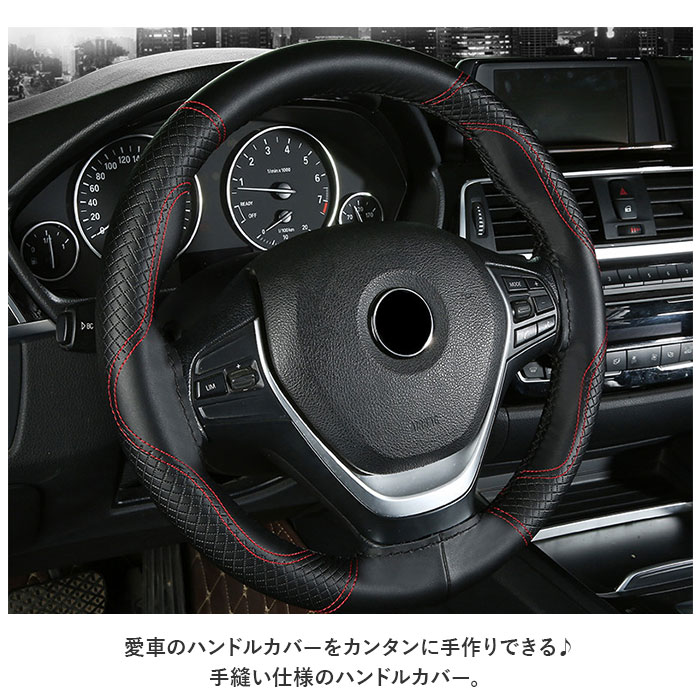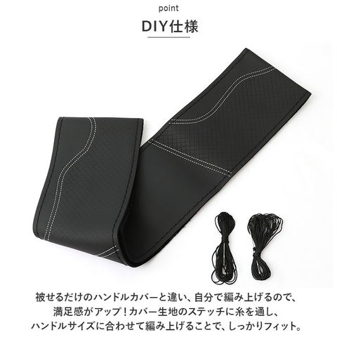 | 商品説明 | 愛車のハンドルカバーをカンタンに手作りできる♪手縫い仕様のハンドルカバー。【DIY仕様】被せるだけのハンドルカバーと違い、自分で編み上げるので、満足感がアップ!カバー生地のステッチに糸を通し、ハンドルサイズに合わせて編み上げることで、しっかりフィット。【本格的な生地】滑らかな質感のスプリットレザーを採用し、高級感を演出。耐久性もあり◎【滑り止め】表面にデザイン性のある滑り止め加工が施されており、グリップ力があり握りやすいのもポイント。【ハンドル適用サイズ】直径約36.5cm~37.9cmのハンドルに対応、様々な車種で使える☆【付属品】針×2、糸×2 |