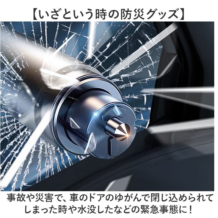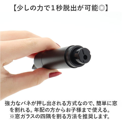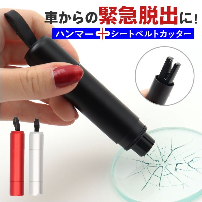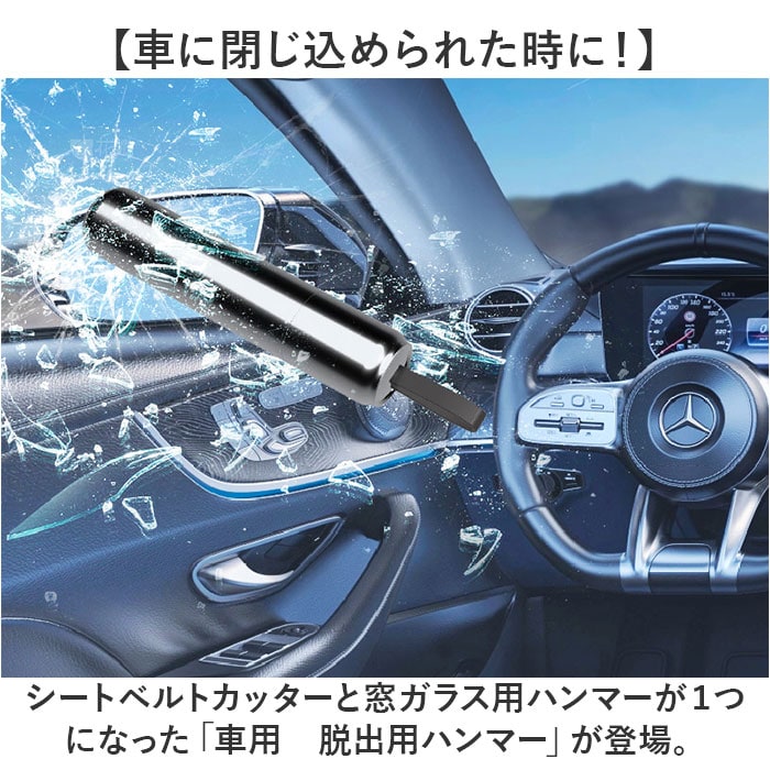 | 商品説明 | 【車に閉じ込められた時に!】シートベルトカッターと窓ガラス用ハンマーが1つになった「車用 脱出用ハンマー」が登場。【いざという時の防災グッズ】事故や災害で、車のドアのゆがんで閉じ込められてしまった時や水没したなどの緊急事態に!【少しの力で1秒脱出が可能◎】強力なバネが押し出される方式なので、簡単に窓を割れる。年配の方からお子様まで使える。※窓ガラスの四隅を割る方法を推奨します。【シートベルトをカッターを搭載】持ち手側のフタを外せば、カッターが登場。1つで2役こなしてくれる優れモノ!【固定ホルダーつき!】粘着テープを搭載した、固定ホルダーつき!車内の手の届く所に固定できるのがポイント。【実際にお試しができるから安心!】テスト用のガラスがセットになっているので、実際に体験ができる!※ビニール袋と軍手を用意し、安全に考慮した環境でお試しください。 |