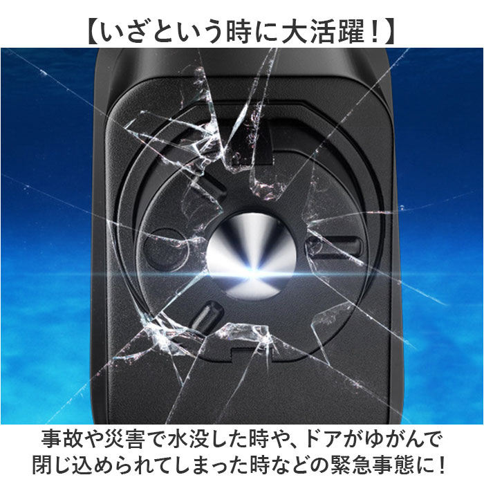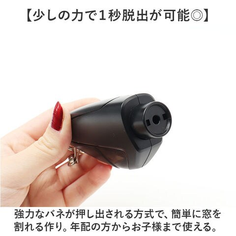 | 商品説明 | 【まるでキーホルダーな防災グッズ】シートベルトカッターと窓ガラス用ハンマーが1つになった「車用 脱出用ハンマー」が登場。【いざという時に大活躍!】事故や災害で水没した時や、ドアがゆがんで閉じ込められてしまった時などの緊急事態に!【少しの力で1秒脱出が可能◎】強力なバネが押し出される方式で、簡単に窓を割れる作り。年配の方からお子様まで使える。※窓ガラスの四隅を割る方法を推奨します。【シートベルトをカッターを搭載】持ち手側のフタを外せば、カッターが登場。1つで2役こなしてくれる優れモノ!【持ち運びしやすいキーホルダー式】車に常備したり、バッグにつけたり、キーケースにつけるのも◎便利なキーホルダータイプ。【実際にお試しができるから安心!】テスト用のガラスがセットになっているので、実際に体験ができる!※ビニール袋と軍手を用意し、安全に考慮した環境でお試しください。 |