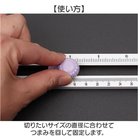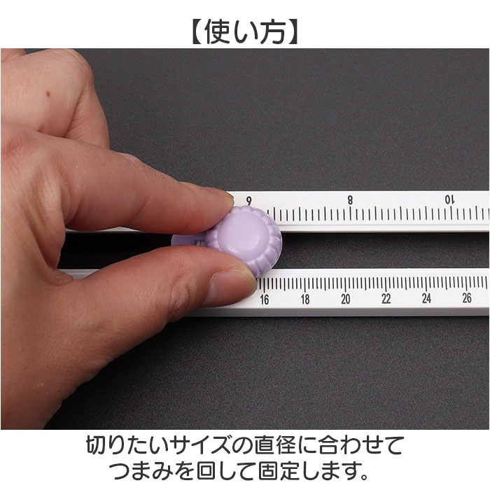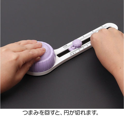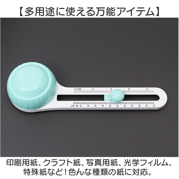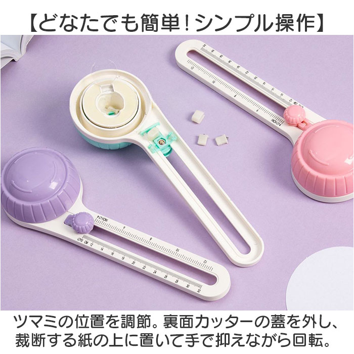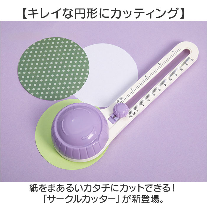 | 商品説明 | 【キレイな円形にカッティング】紙をまあるいカタチにカットできる!「サークルカッター」が新登場。【どなたでも簡単!シンプル操作】ツマミの位置を調節。裏面カッターの蓋を外し、裁断する紙の上に置いて手で抑えながら回転。【目盛り付きでサイズ調節もスムーズ】カットしたいサイズの半径に、目盛りを合わせるだけ。色んな大きさの円形が完成◎(※)ツマミを回して緩め、スライドさせることでサイズ調節が可能です。【替え刃を収納できて便利】替え刃が2個付属。丸い頭の裏面に、便利な収納スペース付き。【多用途に使える万能アイテム】印刷用紙、クラフト紙、写真用紙、光学フィルム、特殊紙など!色んな種類の紙に対応。【軽やかで持ち運びもスマート】サッと手に取れる軽量設計。使い心地抜群で、持ち運びがラクラク。 |