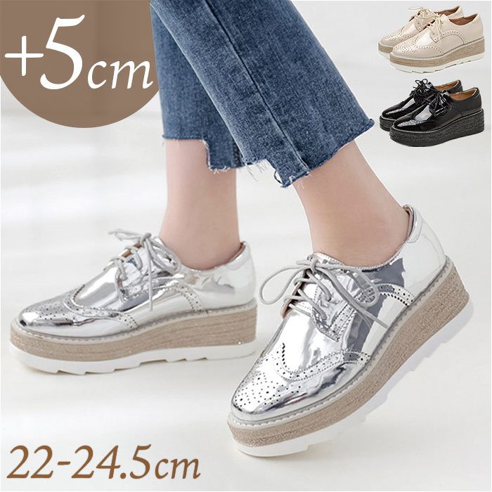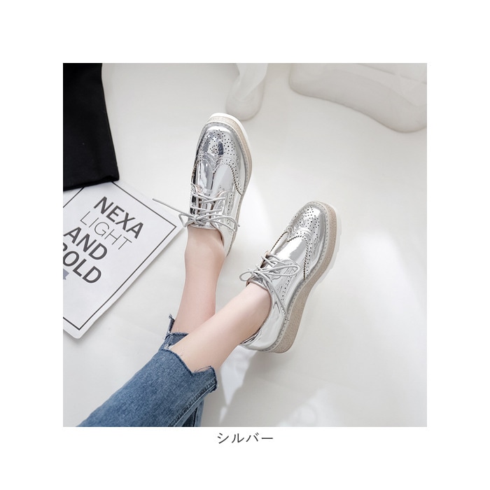 厚底 エナメルスニーカー【シルバー】【34(22cm)】