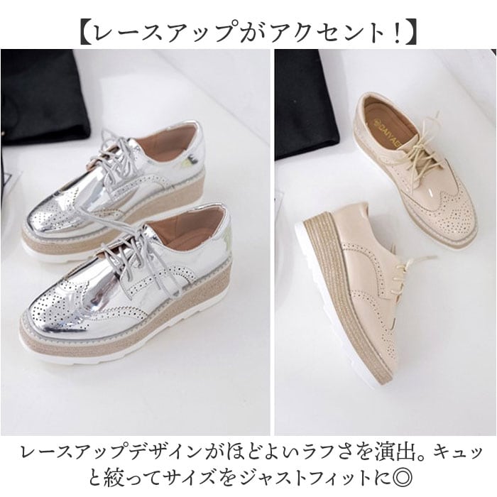 | 商品説明 | 【厚底ソールで今っぽスタイルが完成】履くだけでこなれ感がUPする、おしゃれアイテム☆厚底 エナメルスニーカーが登場。【約5センチのラクチンヒール】足への負担が少ないほどよいヒール。フラットな形状なので、ヒールが苦手な方にもオススメ。【足元がスタイリッシュに仕上がる】スニーカーのカジュアルさを感じさせない、ツヤのある素材が魅力。上品見せしてくれる!【レースアップがアクセント!】レースアップデザインがほどよいラフさを演出。キュッと絞ってサイズをジャストフィットに◎【お好みのカラーをチョイス】カラーによって異なる印象!自分のお気に入りの一足がきっと見つかる。 |
