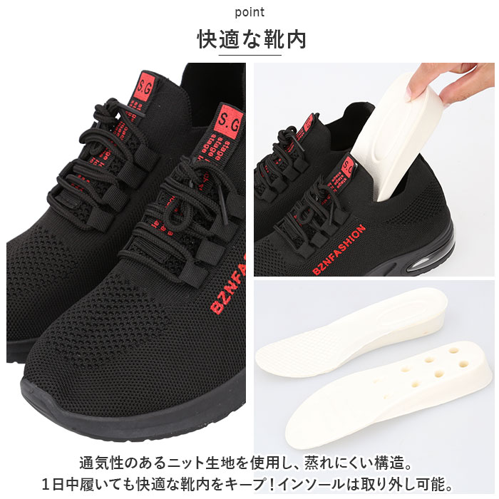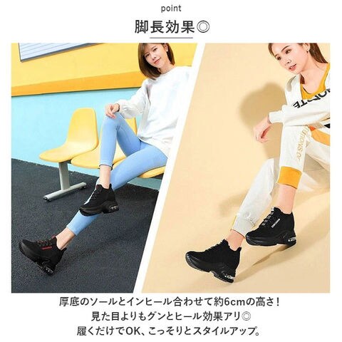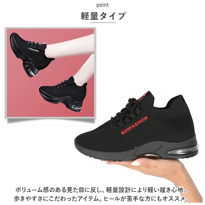 | 商品説明 | シークレットインヒールでスタイルアップ!身長UPでコーデを格上げ☆「インヒールスニーカー」が登場!【脚長効果◎】厚底のソールとインヒール合わせて約6cmの高さ!見た目よりもグンとヒール効果アリ◎履くだけでOK、こっそりとスタイルアップ。【軽量タイプ】ボリューム感のある見た目に反し、軽量設計により軽い履き心地。歩きやすさにこだわったアイテム。ヒールが苦手な方にもオススメ。【エアークッション】厚底ソールが地面から足へ与える衝撃を吸収し、足の疲れを軽減してくれる。エアークッション搭載で、快適な歩行ができる。【快適な靴内】通気性のあるニット生地を使用し、蒸れにくい構造。1日中履いても快適な靴内をキープ!インソールは取り外し可能。【滑り止めつき】靴底には滑り止め加工を施し、雨の日の濡れた地面も安心して歩行できる。【カジュアルデザイン】英字ロゴデザインや配色を抑えたシンプルでカジュアルなデザインが今っぽい。パンツにもスカートにも合うのでひとつあると大活躍のアイテム! |