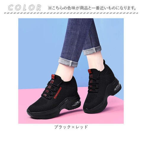 インヒールスニーカー pmyinsn01【ブラック×レッド】【40(25cm)】