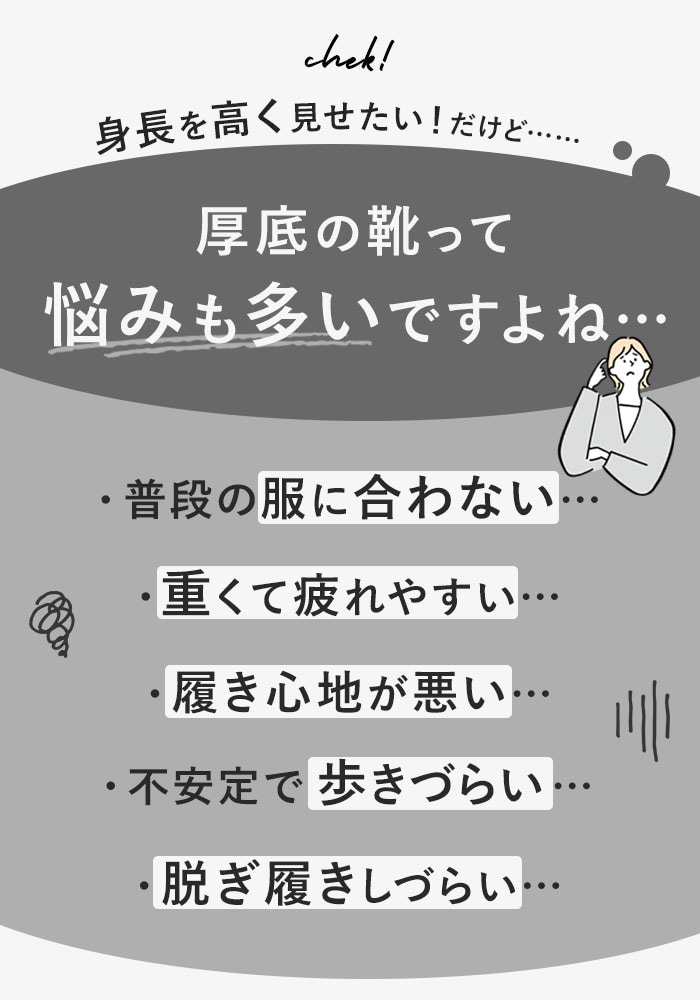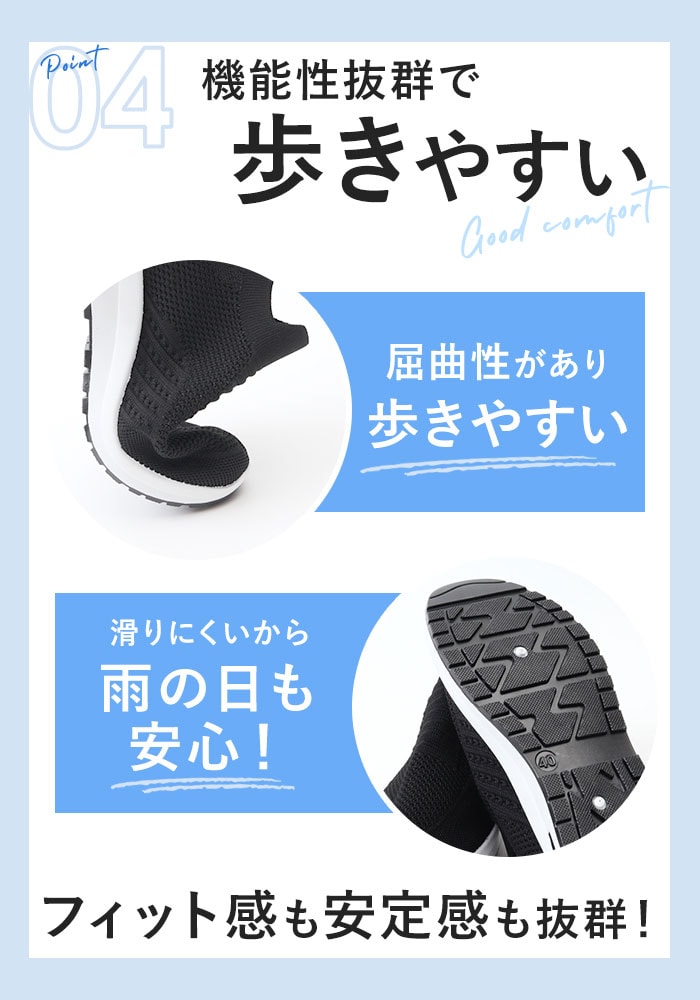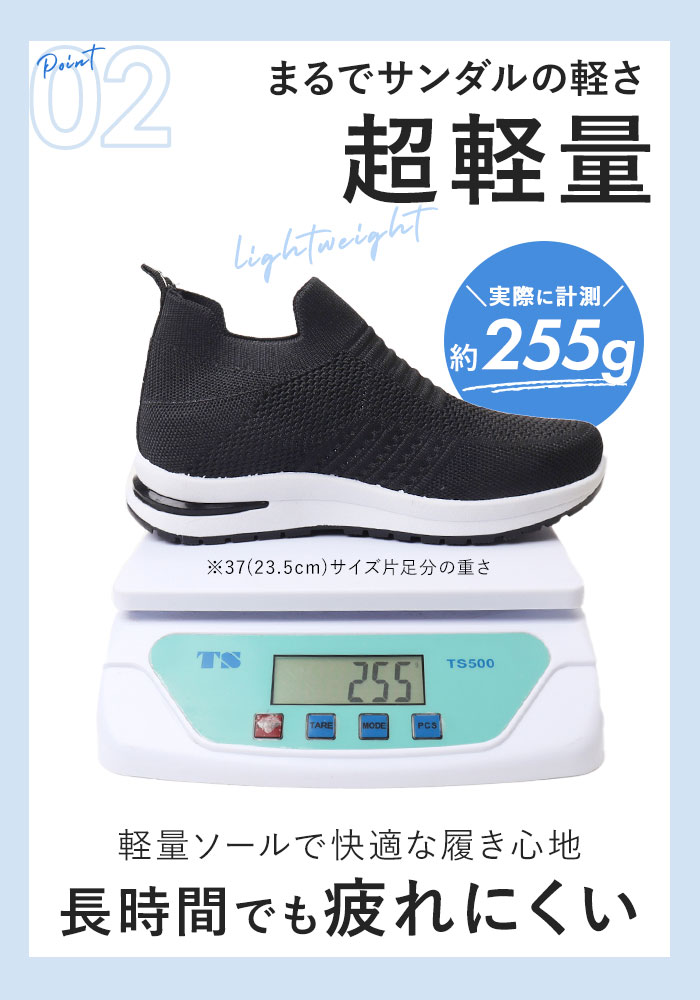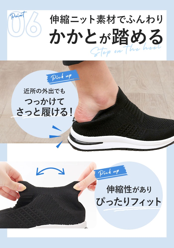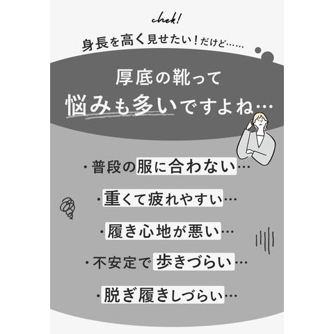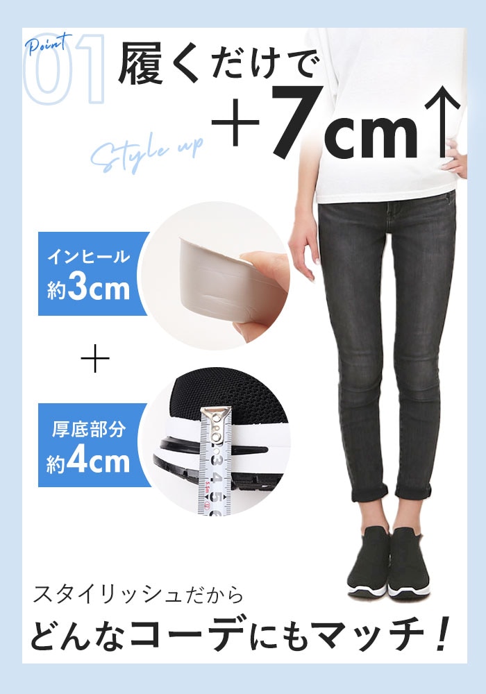 | 商品説明 | 【足元すらりキレイ魅せ】履くだけで身長がアップする!「インヒールスニーカー」が新登場。【Wの効果でこっそりスタイルアップ】約4cmのアウトソールと約3cmの取り外し可能なインソールで、身長が伸びた気分☆【フィット感抜群のニット仕上げ】アッパー部分は、ストレッチ性のあるメッシュニット生地。優しく包み込んでくれるのが嬉しい!【汗ばむ季節もサラッと快適】通気性に優れており、熱がこもりにくい!夏場でもムレにくいのがポイント。【どこでも脱ぎ履きスムーズ】足入れスムーズなスリッポンタイプ。かかとにはプルタブ付きで、脱ぎ履きに手間取らない♪【屈曲性があり、歩きやすさが向上】つま先部分は、足の動きに合わせて柔軟に曲がる上向き形状。蹴り上げやすくつまずきにくい!【滑りにくく安定感のあるソール】底面に凹凸を施した滑りにくい仕様。安定した歩行をサポート。【トレンド感のある足元を演出】シンプルながら抜け感のあるデザイン。コーデに合わせやすいベーシックカラーをラインナップ。 |