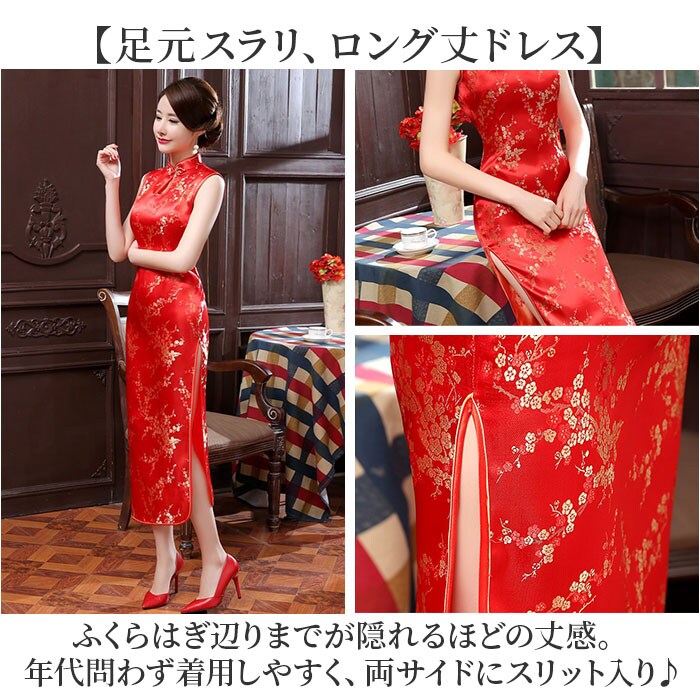| 商品説明 | 【みんなの視線を釘付けに♪】ボディラインをキレイに魅せ、スタイルアップ効果抜群!目を惹く「チャイナドレス」。【上品さが際立つ大人なデザイン】光沢のある生地に、鮮やかなデザインを施した1着。袖のないノースリーブタイプ。【足元スラリ、ロング丈ドレス】ふくらはぎ辺りまでが隠れるほどの丈感。年代問わず着用しやすく、両サイドにスリット入り♪【バックファスナーですっきりと】バックファスナーをスッと上げて、チャイナボタンを留めるだけ。メリハリのあるシルエットに◎【イベントなどで大活躍間違いなし】ハロウィンやコスプレイベント、結婚式の余興など!いつもと違う自分に変身☆【お気に入りを選べるカラー】シックな色合いや、可愛らしい明るめのカラーをラインナップ。ご友人と色違い揃えもおすすめ。 |