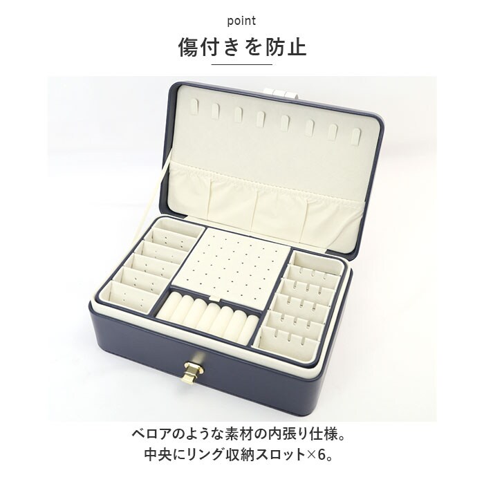 ジュエリーボックス 大容量 おしゃれ pmyjew002【ネイビー】
