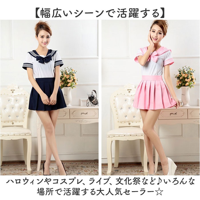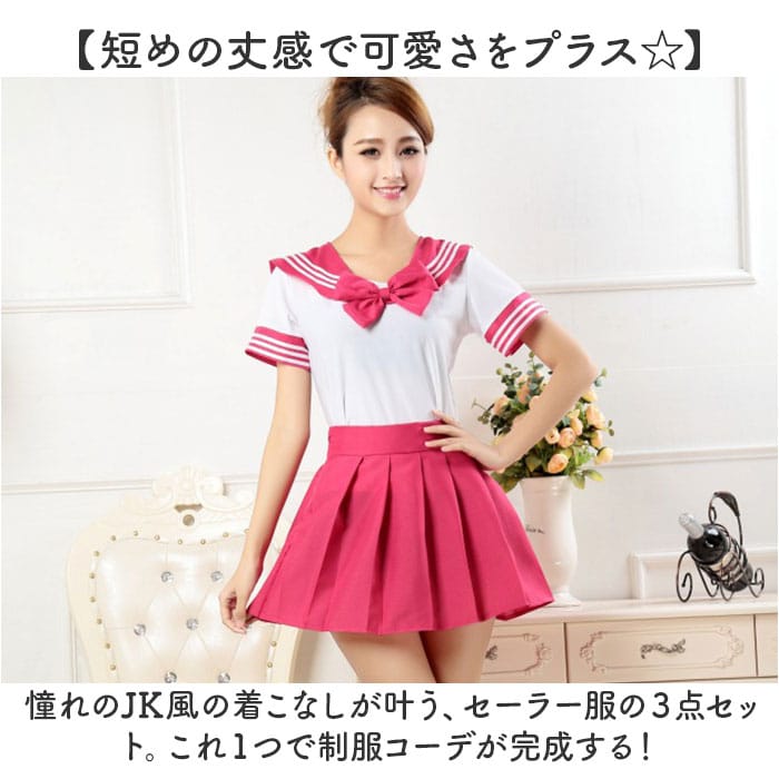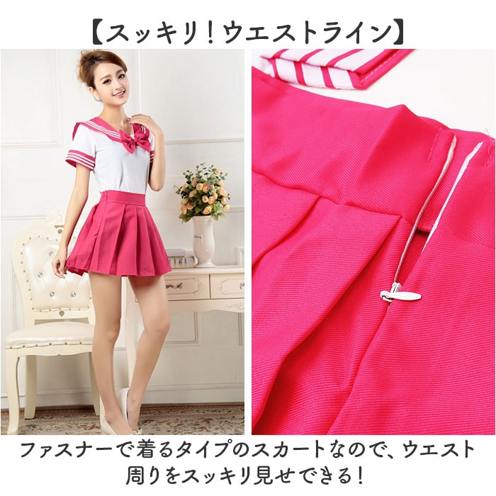 | 商品説明 | 【コスプレやいろんなイベントに♪】キュートなカラーとミニ丈がポイント!「セーラー服 JK制服」が登場。【短めの丈感で可愛さをプラス☆】憧れのJK風の着こなしが叶う、セーラー服の3点セット。これ1つで制服コーデが完成する!【結ぶ手間なしのリボン♪】安全ピンでとめるだけでOKのリボンなので、ほどける心配なし◎簡単にお着替えできてラクラク!【スッキリ!ウエストライン】ファスナーで着るタイプのスカートなので、ウエスト周りをスッキリ見せできる!【ふわっとプリーツでスタイルUP】太めのプリーツがふわっと広がるスカート♪ほどよいミニ丈で、美脚&スタイルUP効果が◎【幅広いシーンで活躍する】ハロウィンやコスプレ、ライブ、文化祭など♪いろんな場所で活躍する大人気セーラー☆ |