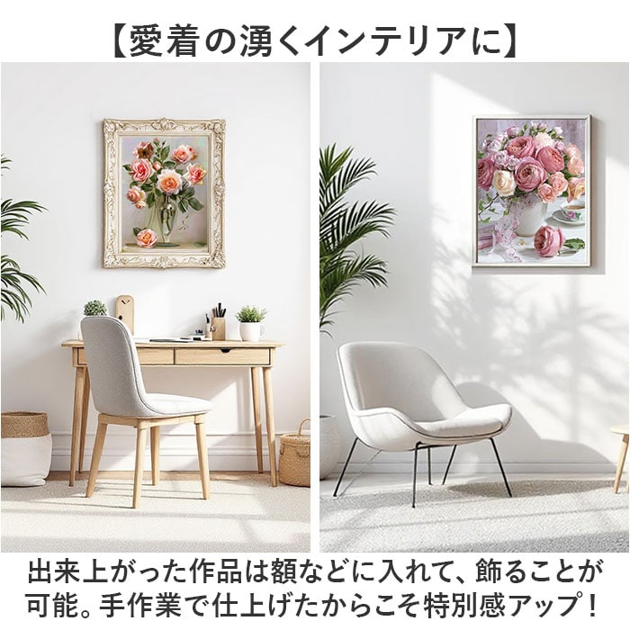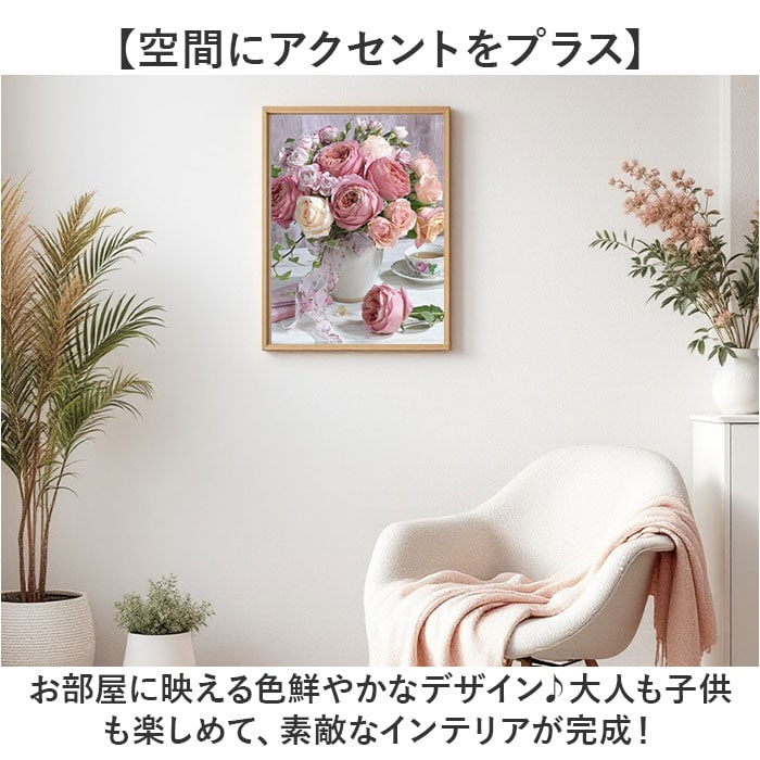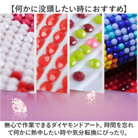 | 商品説明 | 【誰でもアーティスト気分を満喫】自宅で気軽に、作品作りを楽しめる♪「ダイヤモンドアート」。【初心者さんでも安心◎シンプル設計】ペン先にのりを付けカラービーズを取り、粘着性のある台紙に貼り付け。プレスすればOK。【決められた色のビーズをON】台紙には英数字が印刷されており、対応するビーズを1つ1つ貼り付けるだけの簡単工程。【愛着の湧くインテリアに】出来上がった作品は額などに入れて、飾ることが可能。手作業で仕上げたからこそ特別感アップ!【何かに没頭したい時におすすめ】無心で作業できるダイヤモンドアート。時間を忘れて何かに熱中したい時や気分転換にぴったり。【空間にアクセントをプラス】お部屋に映える色鮮やかなデザイン♪大人も子供も楽しめて、素敵なインテリアが完成! |