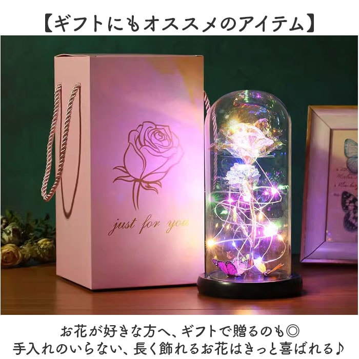 | 商品説明 | 【幻想的な輝きが美しい♪】置くだけで、リッチな空間に!「ガラスドーム LED付き」が登場。【そのままでもライトをONにしても◎】パッと目を惹く、煌めくフラワー。そのままでも美しく、LEDライトをつければもっと華やかに♪【幻想的な空間を演出】気品のあるガラスドームが、見るたびにリッチな気分にしてくれる。置くだけで特別な空間に。【コードレス、簡単にスイッチ切替】場所を問わず、どこにでも飾れる電池式。底部のスイッチで簡単にON、OFF操作が可能。【ギフトにもオススメのアイテム】お花が好きな方へ、ギフトで贈るのも◎手入れのいらない、長く飾れるお花はきっと喜ばれる♪※単4電池×3本使用。(別売り) |