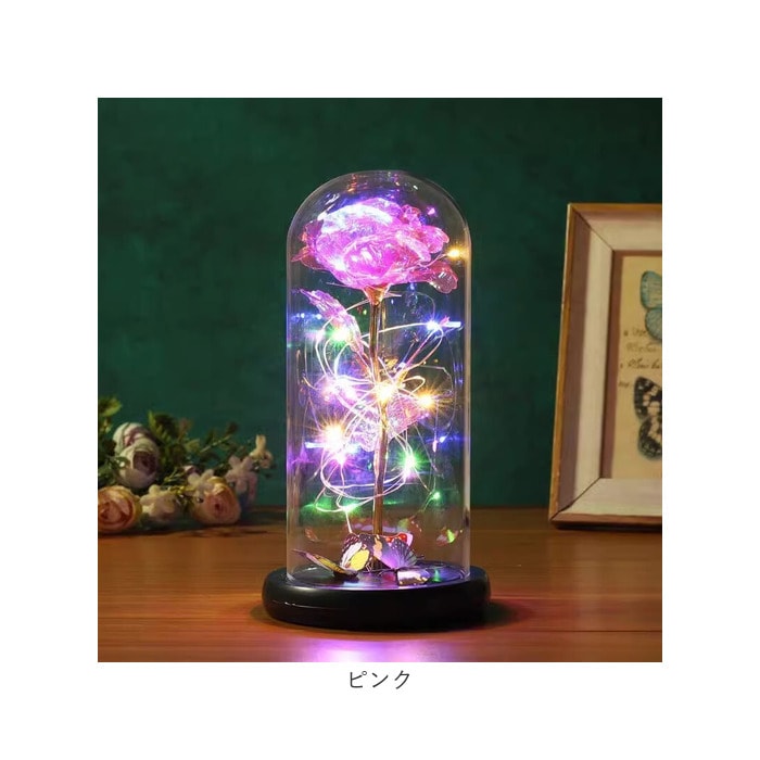 ガラスドーム 飾り おしゃれ LED付き【ピンク】