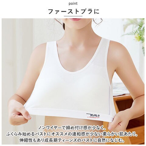 | 商品説明 | ノンワイヤーで締め付けない。コットン使用でお肌に優しい♪ジュニアブラが登場!【やさしい生地】コットンを使用した柔らかな生地で、お肌にも安心でやさしい着け心地。お肌に触れる部分と背面がメッシュ仕様になっており、通気性が抜群で暑い日も快適◎【ファーストブラに】ノンワイヤーで締め付け感が少なく、ふくらみ始めるバストにオススメの違和感が少ない柔らかい肌あたり。伸縮性もあり成長期ティーンズのバストに自然になじむ。【選べる2タイプ】AタイプはスポーツシーンにもぴったりなズレにくいY字型のストラップ。Bタイプは幅広なつくりのタンクトップタイプで肩にかかる負担を軽減。【優しいカラー】優しい雰囲気のパステルカラーとスポーティーなデザイン。洗い替え用に何枚か揃えるのもおすすめ◎ |