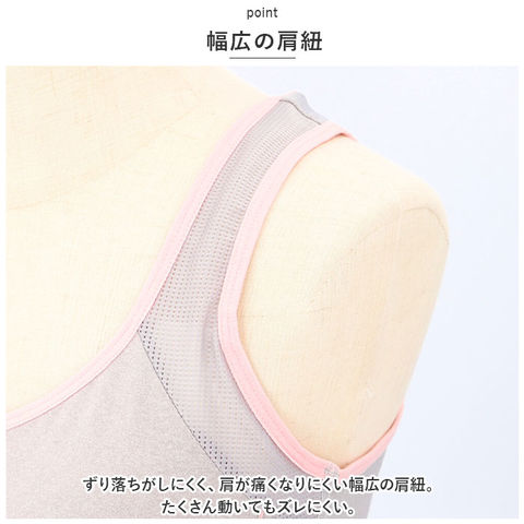 | 商品説明 | ノンワイヤーだけどフルカップ仕様でしっかりホールド。「ジュニアブラジャー」が登場!【やさしい生地】コットンを使用した柔らかな生地で、お肌にやさしい着け心地。スパンデックスとポリエステルを使用した生地なので汗をかいてもサラっと快適。【通気性◎】両サイドと肩紐の一部がメッシュ仕様になっており、通気性が抜群◎運動をするシーンにもぴったり!【ファーストブラに】ノンワイヤーで締め付け感が少なく、ふくらみ始めるバストに最適の柔らかい肌あたり。成長期のティーンズの身体に自然になじむのでファーストブラにオススメ。【幅広の肩紐】ずり落ちがしにくく、肩が痛くなりにくい幅広の肩紐。たくさん動いてもズレにくい。【幅広アンダー】アンダー部分は幅広設計。くるっとめくれ上がりしにくく、しっかりホールド。【シンプルで可愛いデザイン】シンプルなデザインなので服に響きにくい。洋服や体操服を着た時も自然。安心して着用できる。 |
