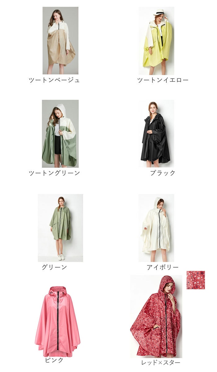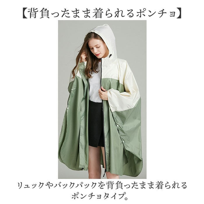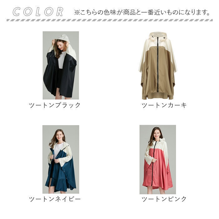 | 商品説明 | 【大人可愛いレインポンチョ】ニュアンスカラーとバイカラーデザインの大人可愛いレインポンチョが発売♪【オシャレなレインアイテム】着る人を選ばない無地のニュアンスカラーやバイカラーデザイン中心のバリエーション♪【雨の日のお出かけや通勤通学に】撥水加工が施されおり、雨の日のお出かけや通勤通学に最適。【背負ったまま着られるポンチョ】リュックやバックパックを背負ったまま着られるポンチョタイプ。【嬉しいフード付き】フードがついているので傘を差せない自転車やレジャーシーンにもオススメ♪【立ち襟仕様で襟元もカバー】立ち襟仕様なので顔まわりはもちろん、襟元もしっかり雨の侵入を防ぐ。【ファスナーは止水ファスナー】着脱がスムーズにできるファスナーは止水ファスナーを採用。より雨に強い設計に。【袖がめくらない設計】袖口部分にはループがついており、指を通して袖がめくり上りを防いでくれる。【便利なポケット付き】フロントにはポケットを配置。ハンカチやスマホを入れるのにピッタリ。【携帯に便利な収納ポーチ付き】カラビナ付きの収納ポーチ付属。カバンにやループに取り付けやすいのもGOOD。 |
